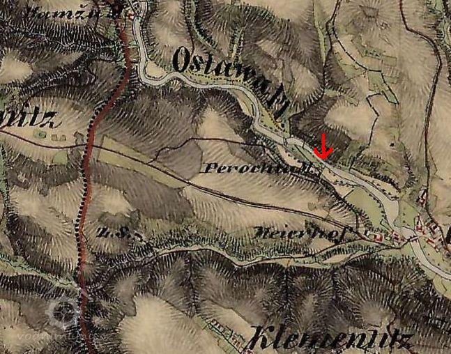 Malý mlýn a pila na samotě na řece Oslavě západně od obce Oslava. V r. 1775 majitel Jan Pirochta, mlýn a pila, později 1835 již bez pily. Dnes dle KN rodinný dům. Jedinou zachovanou památkou na mlýn je zbytek mlýnské strouhy.