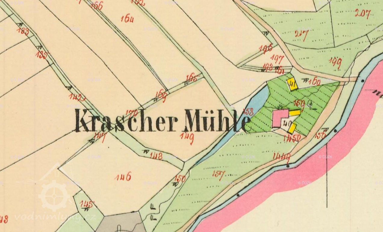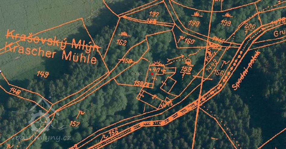 zbytky vodního kola se zde nalézaly ještě v roce 2015, dnes nenalezeny