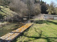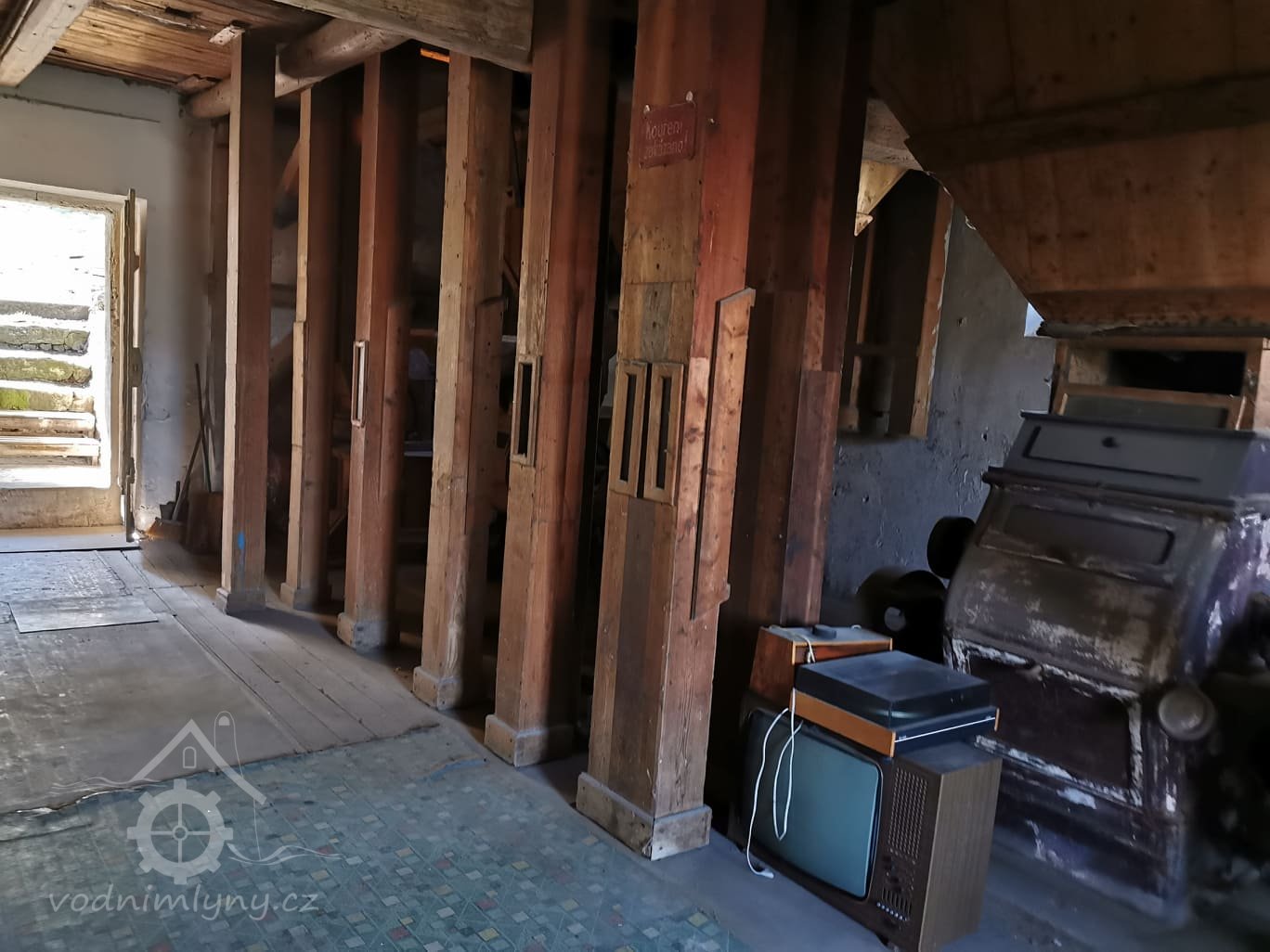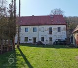 Částečně adaptovaný mlýn u něhož je dodnes dochované vodní dílo.