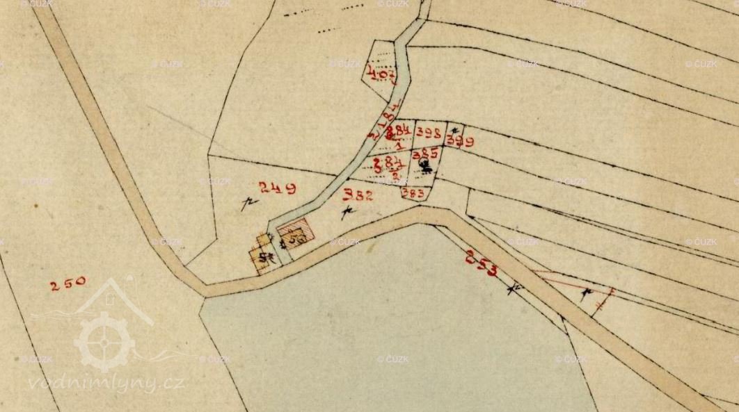 Malý mlýn byl vlastně jen přívažkem velkého hospodářství, včetně rybničního. Při výlovu vlastního rybníka byly ryby dávány na sádky / rybníček za dvorem pod hrází/, odkud se podle potřeby vybíraly k prodeji. Mlýn byl poháněn vodním kolem, které mělo výkon asi 8 kW a také vyráběl generátorem elektrický proud. Další výpomocný motor pomáhal točit to, co vodní kolo neutáhlo. V roce 1925 vodní mlýn do základů vyhořel a byl Alfonsem Klímou obnoven, změněn na válcový, usazena mlýnská stolice šíře 40 cm od firmy Jeřábek z Vel. Meziříčí. Provádělo se tu mletí, byl tu krupník.