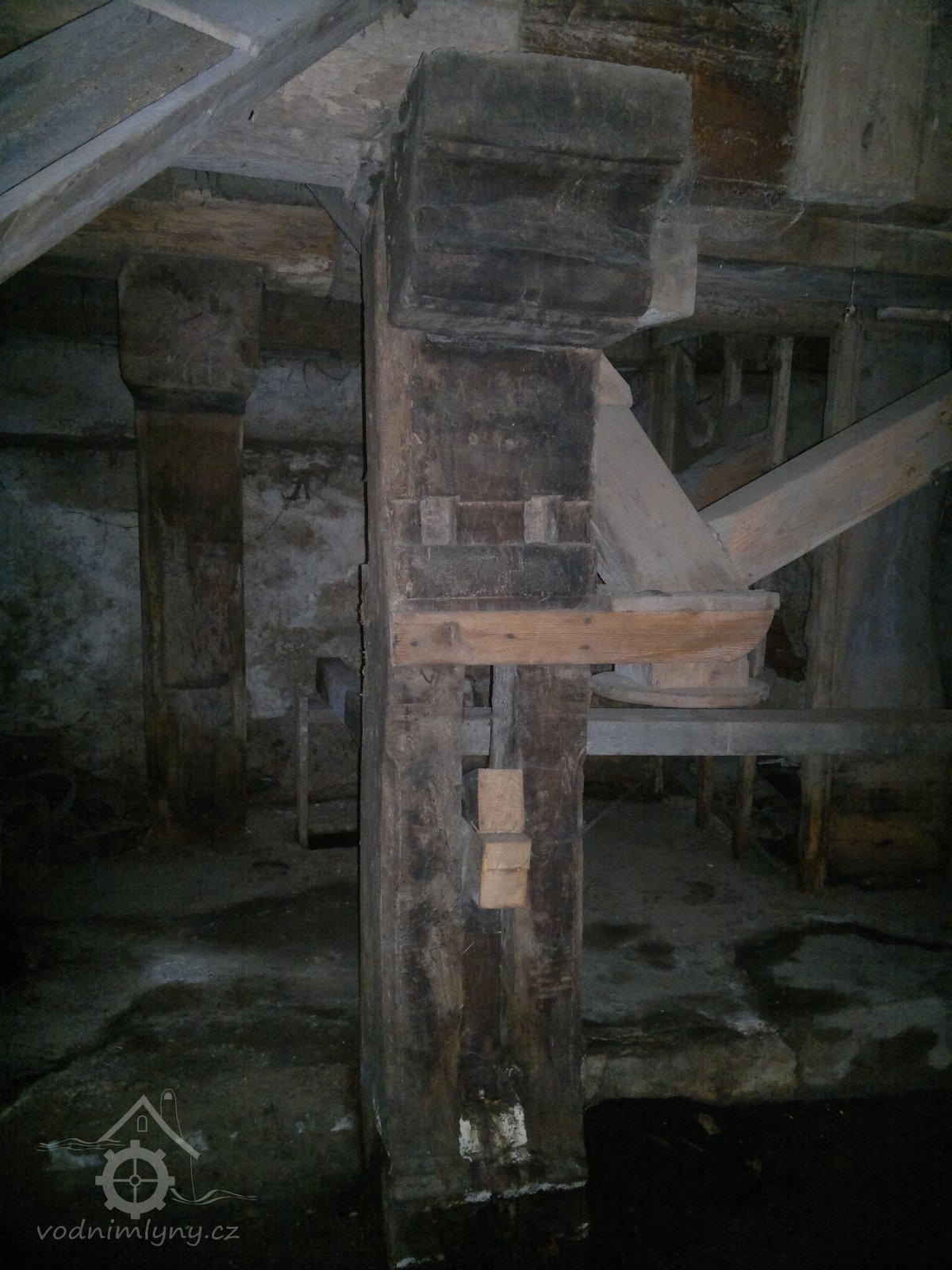 přední sloup mlýnské hranice - 2. dvojice sloupů, 2014, © David Veverka, (Prvky na obrázku: mlýnská hranice, profil zhlaví mlýnské hranice)