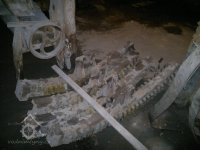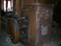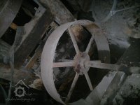 pozůstatky palečního kola - části litinového věnce, 2014, © David Veverka, (Prvky na obrázku: transmise, řemenice, převody)