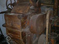 Vzácná válcová stolice fa Kohout - Praha Smíchov, k luštění krupice s porcelánovými válci, vyrobená v poslední čtvrtině 19. stol., 2014, © David Veverka, (Prvky na obrázku: válcová stolice)