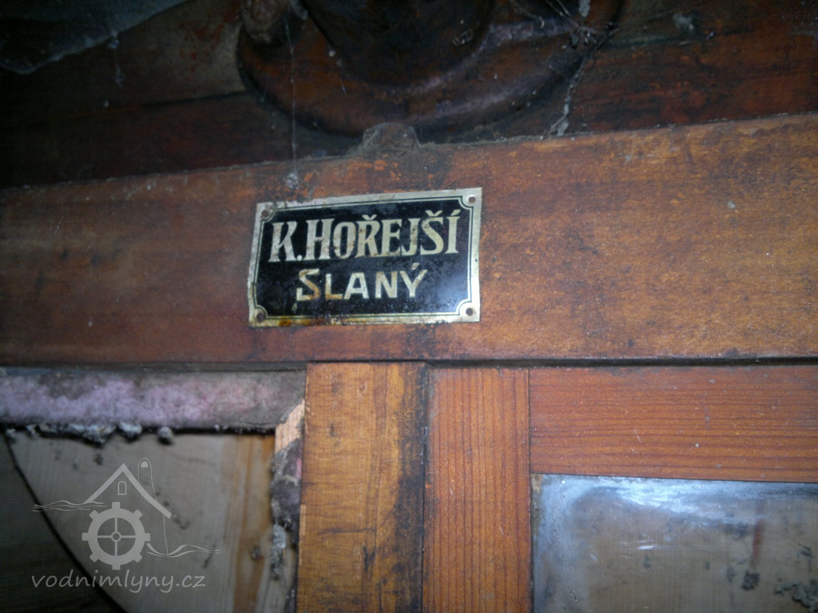 štítek na stroji reforma firmy K. Hořejší - Slaný, 2014, © David Veverka, (Prvky na obrázku: značka výrobce na technologickém vybavení)
