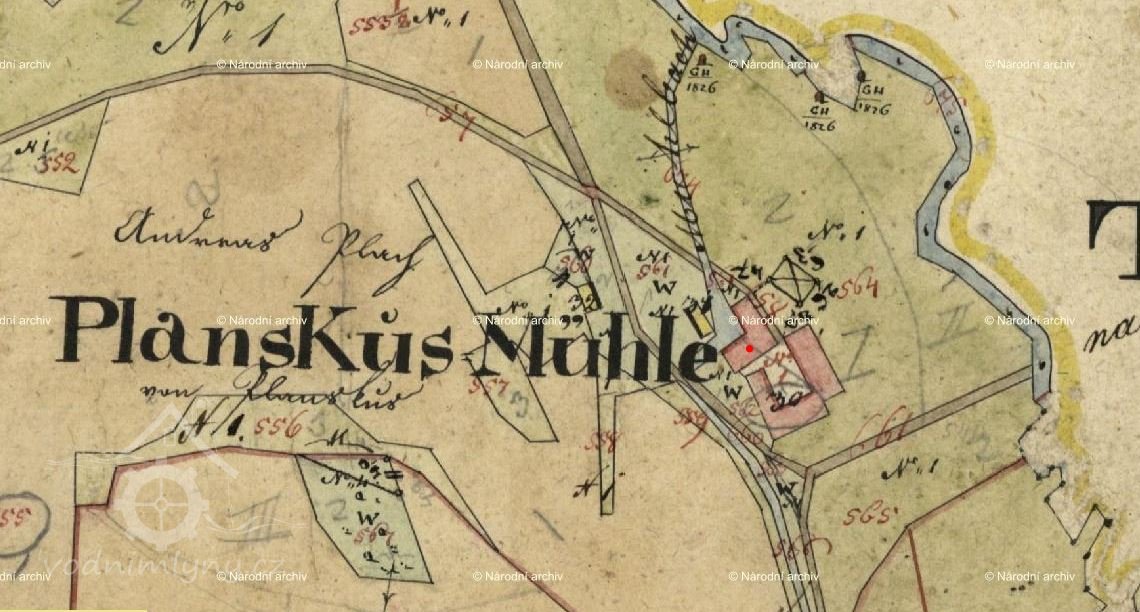 Z Miletínek od tamního Paulus Mühle nás cesta dovede k jedinému objektu, který po osadě Planská zůstal "Planská čp. 1". Laskavostí majitele penziónu a hospodářství jsem byl nasměrován abych prostor, kde mlýn stával vůbec našel. Vzhledem k bujné vegetaci a náletovým dřevinám jsou dnes vidět pouze zbytky zdí a volně roztroušené kameny po tom, co byl mlýn srovnám se zemí. Od r. 1727 po více než dvě století zde mlel mlynářský rod Plachů. Od r. 1826 je zde i pila a v r. 1930 měl mlýn dvě vodní kola