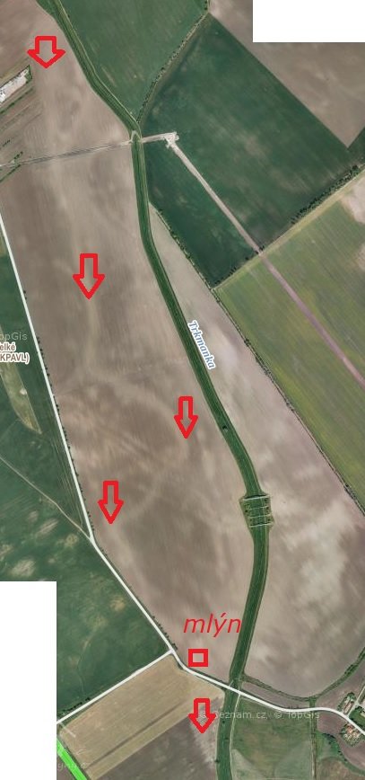 Mlýn uvedený na mapování v 19. stol., na 3. vojenském mapování již uváděn není a v 50. letech 20. stol. zcela bez pozůstatků, na jejich místě jsou pole. Průběh náhonu i umístění mlýna je mimo jiné krásně patrné i z letecké prospekce.