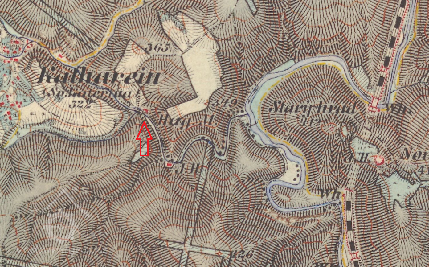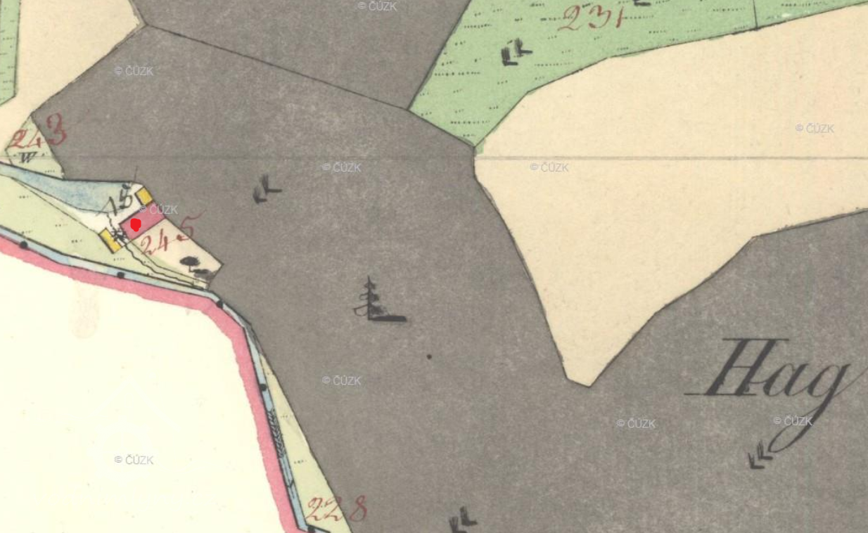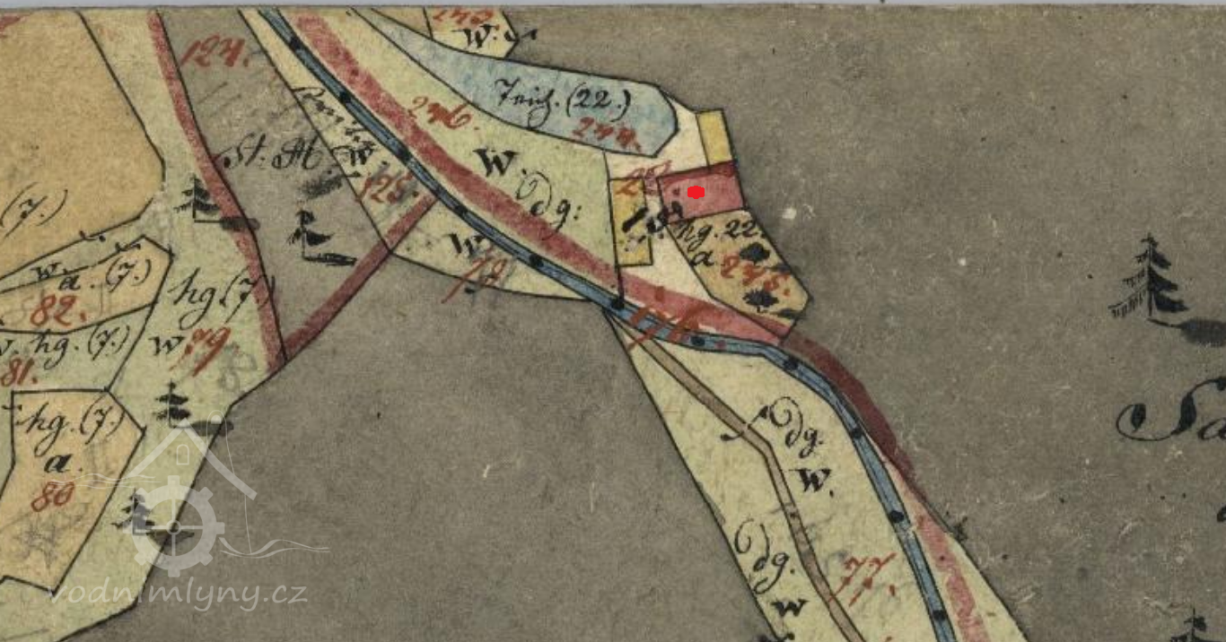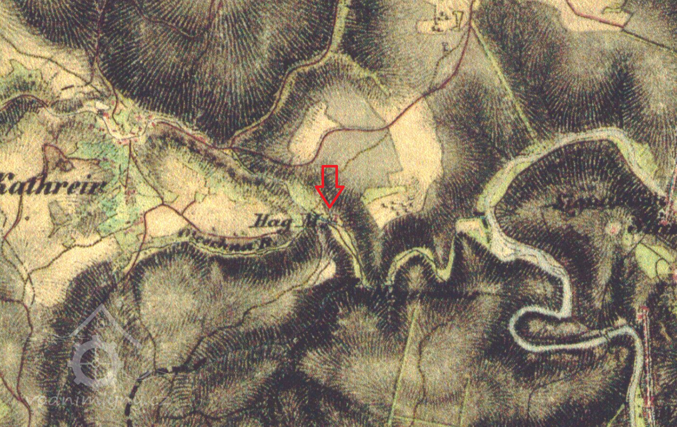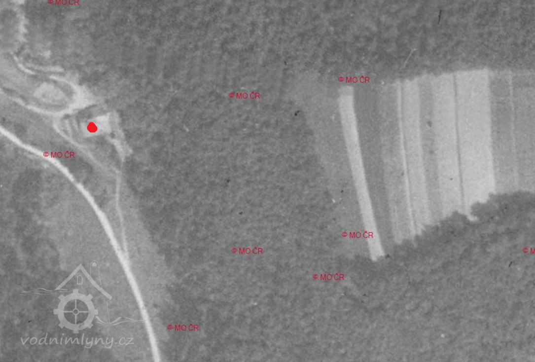 Mlýn dohledán na mapě II. vojenského mapování. (JV)