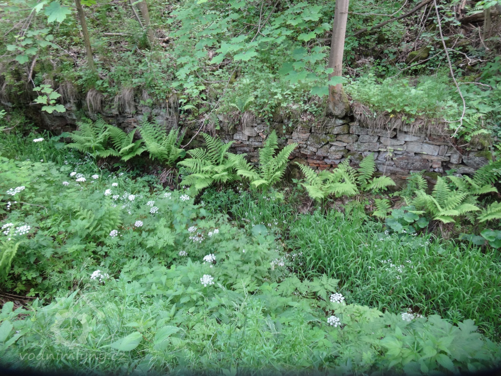 1931: délka náhonu 550 m, šířka 1,7 - 2 m, voda přímo na kolo se vede dřevěným žlabem širokým 0,75 m, potom padá do stoky, která znovu ústí do Zlatého potoka přímo nad jezem mlýna čp. 24 uživatele vodní síly Rudolfa Dvořáka