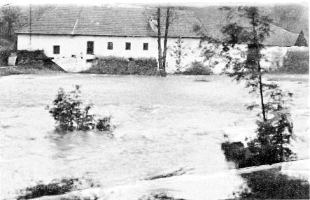 zasažen povodní 1954, voda odnesla prasata a drobné zvířectvo