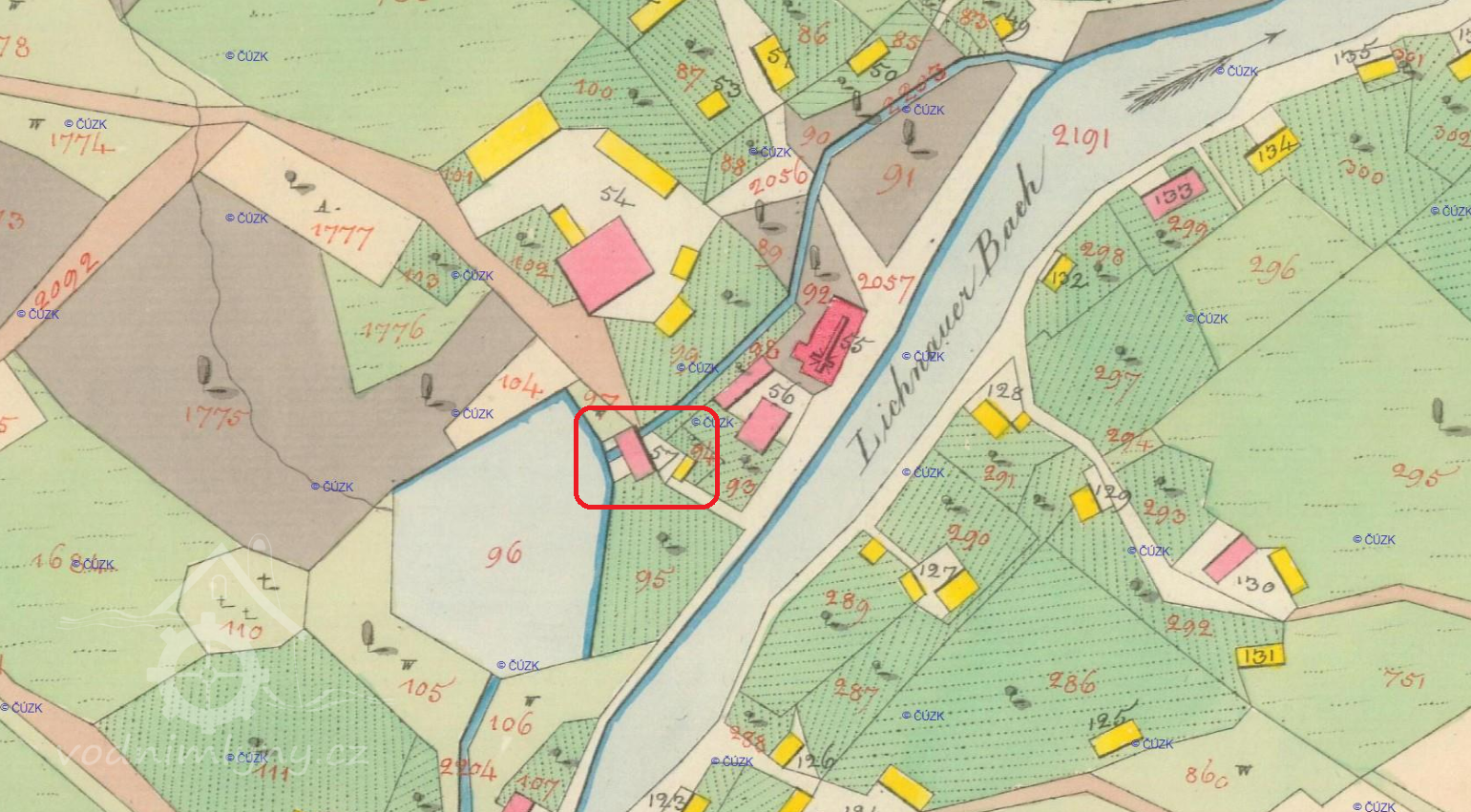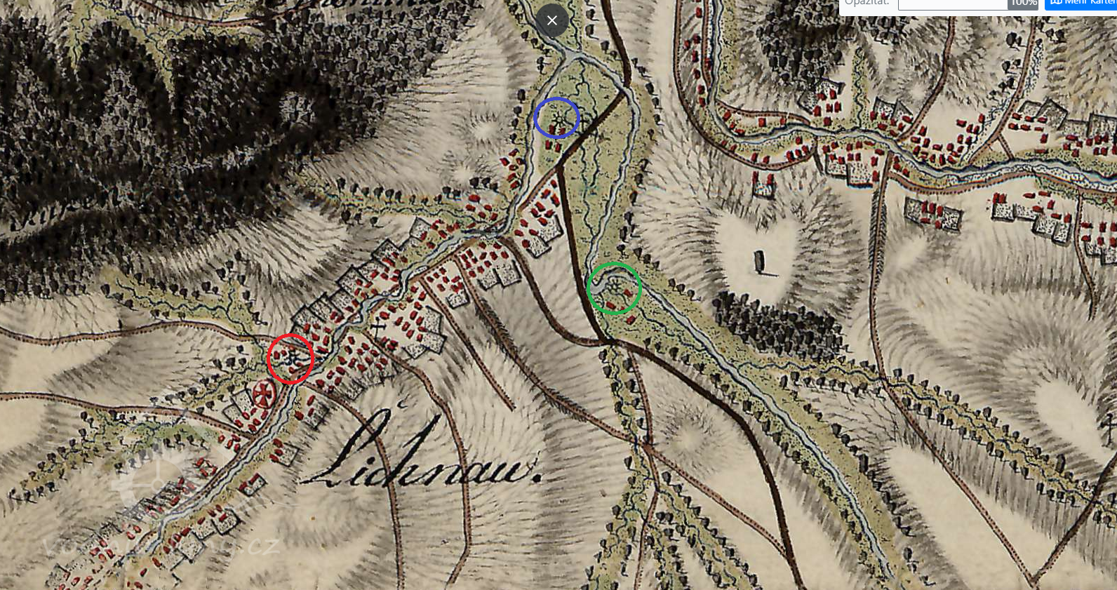 týž urbář: Matěj, fojt lichnovský, má 3 1/2 lánu ... pod rybníkem mlýnek maučný, krčmu a fojtství svobodné.