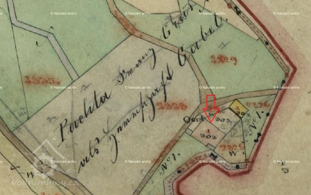 Rok 1820 – mlýn provozoval mlynář Joseph Bürger, který sem přišel z Žibřidic čp. 10, kde se narodil jako syn tamního mlynáře Wenzela Bürgera a jeho manželky Elisabeth. Na mlýn se přiženil, oženil se s Marií Annou (Mariannou) Posselt, dcerou předchozího, již zemřelého zdejšího mlynáře Josepha Posselta, 4. 6. 1820 se jim narodil syn Franz, kterému byl za kmotra Joseph Kössler, mlynář z obce Grund (Podluží).
