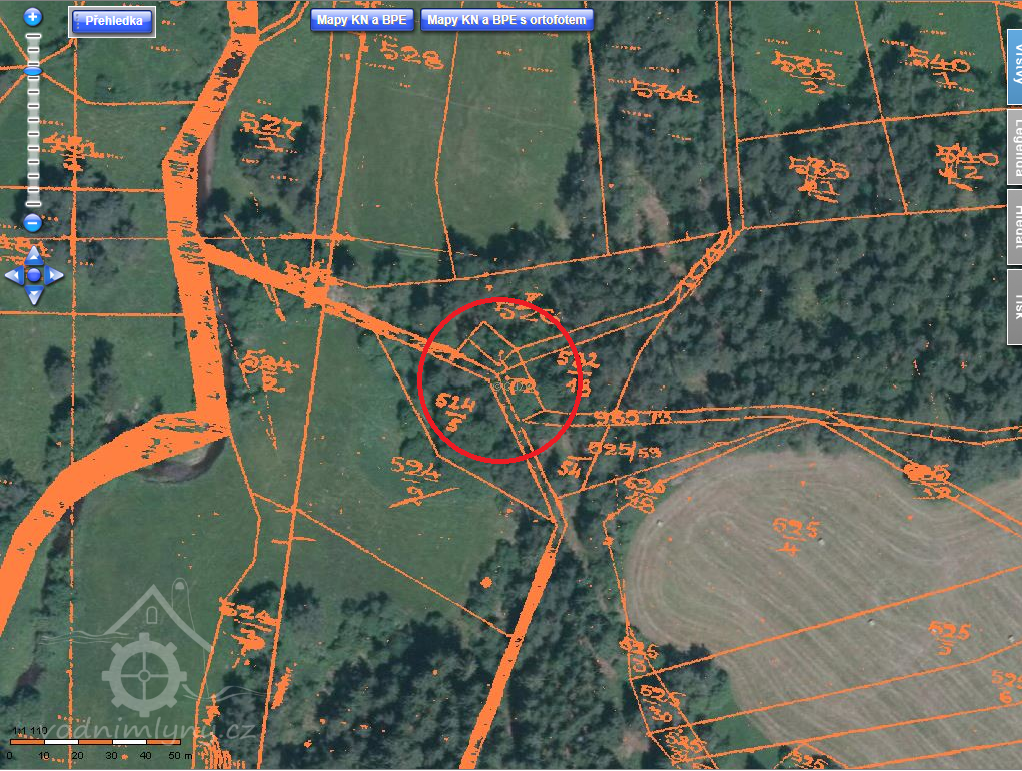 Usedlost čp.53/st.p.72 v k.ú.Zbytiny.Nemovitost je zobrazena na mapě Stabilního katastru:Čechy-9204-1- mapový list č.008.Majetkově patřil mlýn/mimo r.1925-1929/ k domům čp.19/st.p.42 a čp.20/st.p.43 ve Zbytinách.