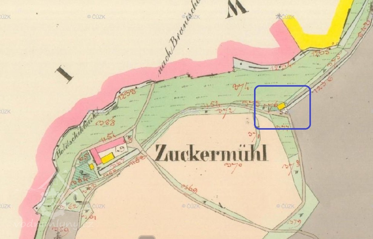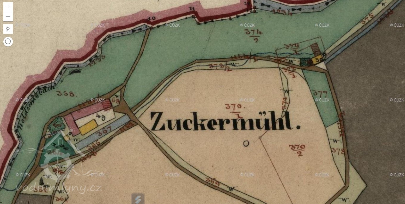 Trosky mlýna nad Velkým Zuckerovým mlýnem. Poslední majitelé obou mlýnů v předválečném období byli bratranci Zuckerové. Na indikační skice je uvedeno čp. 27, na Seznamu vodních děl a v současném Katastru nemovitostí je uvedeno čp. 39.