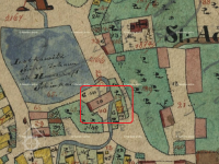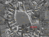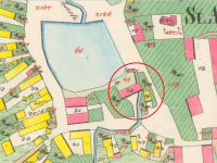 Mlýn pod rybníkem na návsi, zbořen v roce 1967, číslo přeneseno na samoobsluhu z akce Z v sousedství.