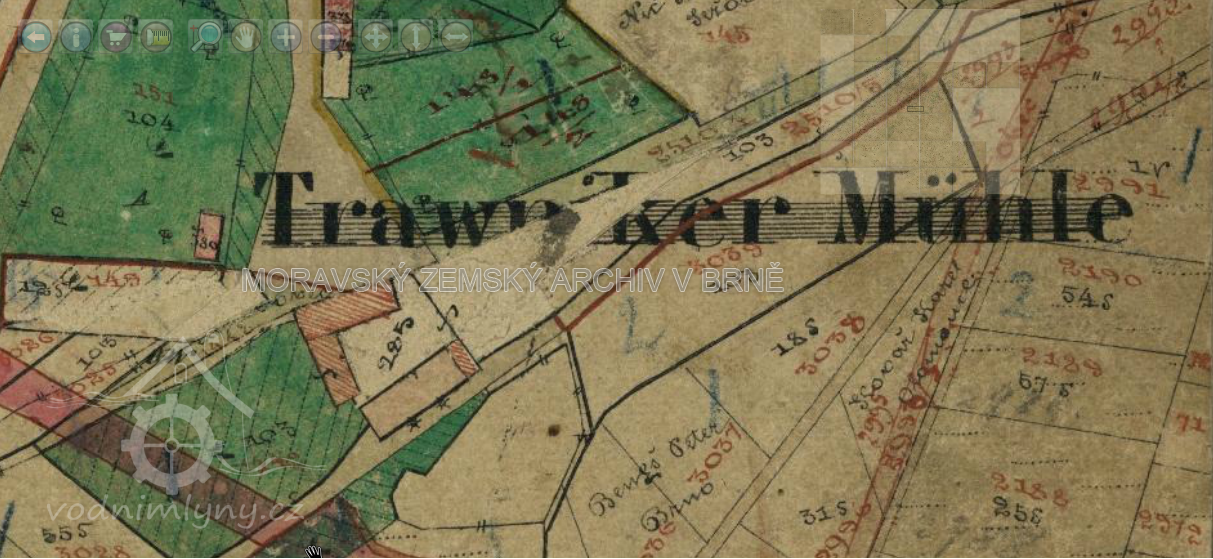 "1530 - Stál pod městem Kyjovem mlýn, zvaný Volkový, asi dnešní t. zv. Trávnický mlýn"
