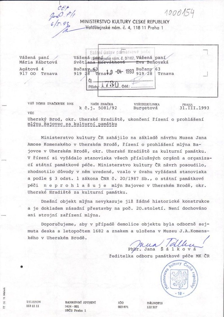 č. 5620/1993, rozhodnutí o neprohlášení památkou