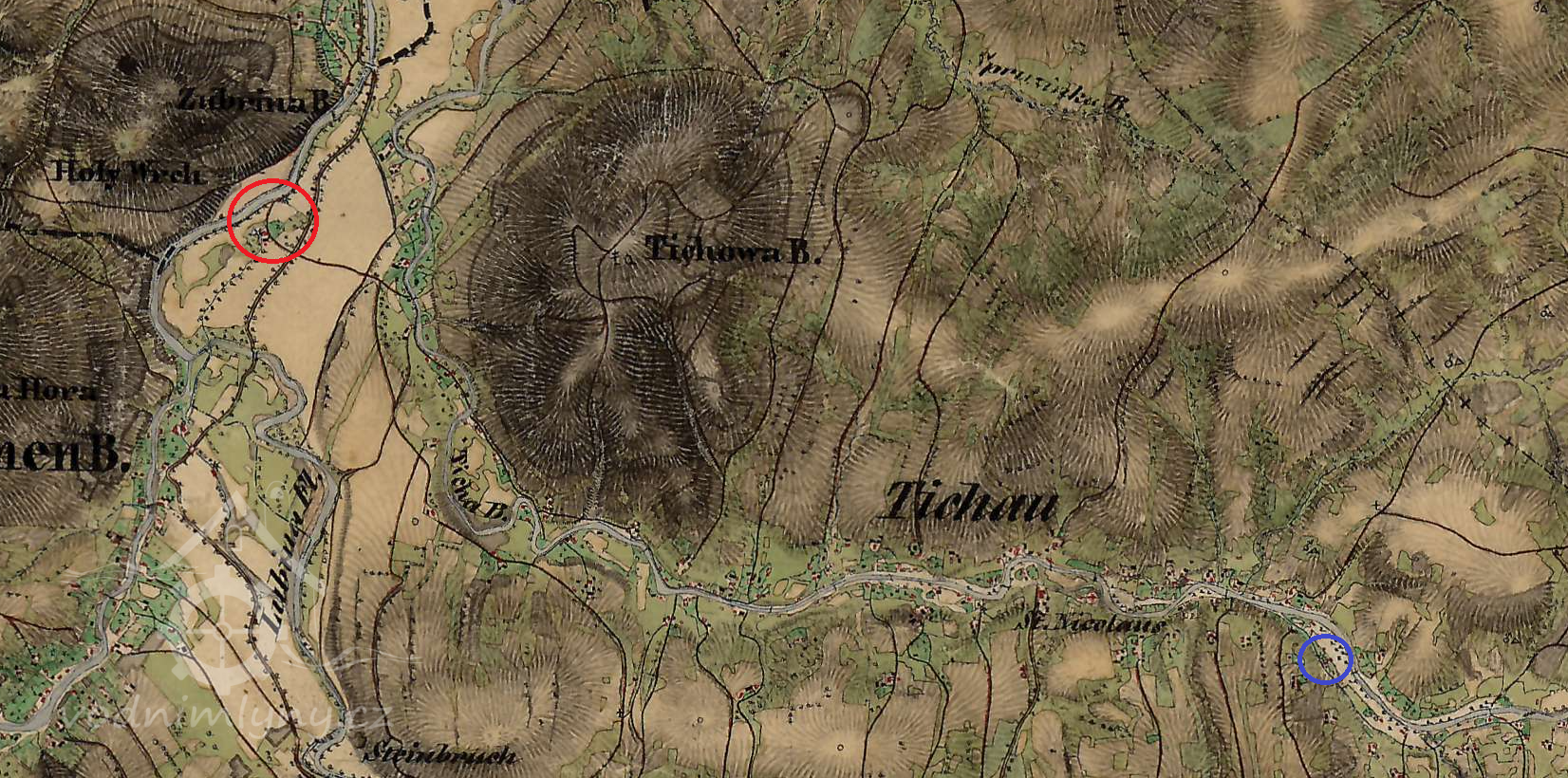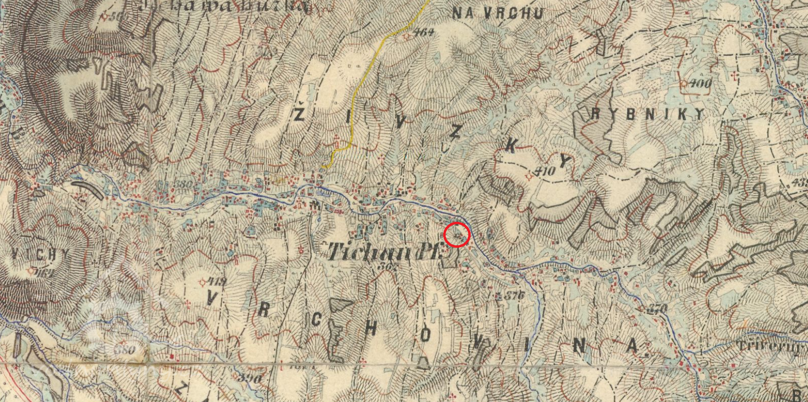 1635 Popis hukvaldského panství: v Tichej fojt má mlýnek o 1 kole, z něhož platu dává ročně nic