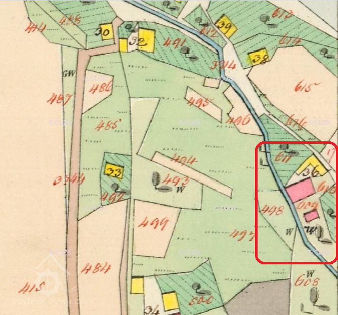 1581 Urbář hukvaldský: Urban mlynář z mlýnu maučného o sv. Jiří 3 1/2 zl., o sv. Václavu tolikýž. Roboty k zámku, co se mu rozkáže, povinen dělati sekyrú každý rok 6 dní.
