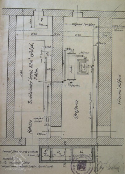 Denní kapacita mlýna: 75 q obilí na mouku a 25 q šrotu.