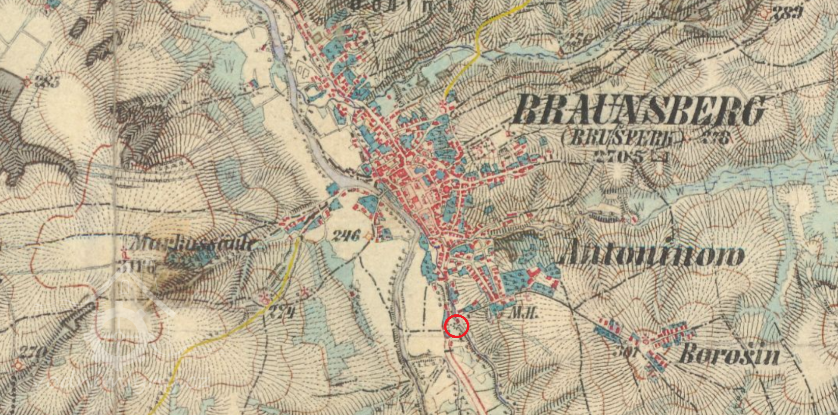 Valcha u hostince na Antonínově v čísle 107/117 byla označena jako horní valcha, na rozdíl od valchy dolní u Staré Vsi. Majitel František Šajer, když řemeslo soukenické zaniklo, přestavil valchu na mlýn o dvou složeních, a tak ku dvěma mlýnům hornímu – Libosvárského, dolnímu Štalmachovu, přibyl třetí mlýn. V roce 1903 odprodala obec Františku Šajerovi louku p.č. 1053, která k mlýnu přiléhala, za 1200 korun a ten na této parceli vystavil pilu na vodní pohon.
