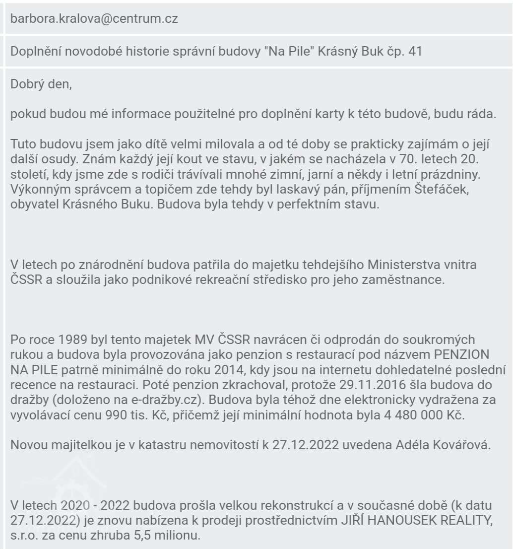 Prvním nájemcem byl od roku 1808 Johannes Kirschner s manželkou Magdalenou a dvěma dětmi. Ten zde provozoval pouze bělidlo. O dva roky později sem přišel jako druhý nájemce mlynář Ignatz Simchen, původem ze mlýna v obci Doubice, který zde provozoval mlýn. Od roku 1811 zde již Kirschner nebyl evidován, mlynář Simchen zde hospodařil sám, a to až do roku 1815 včetně.