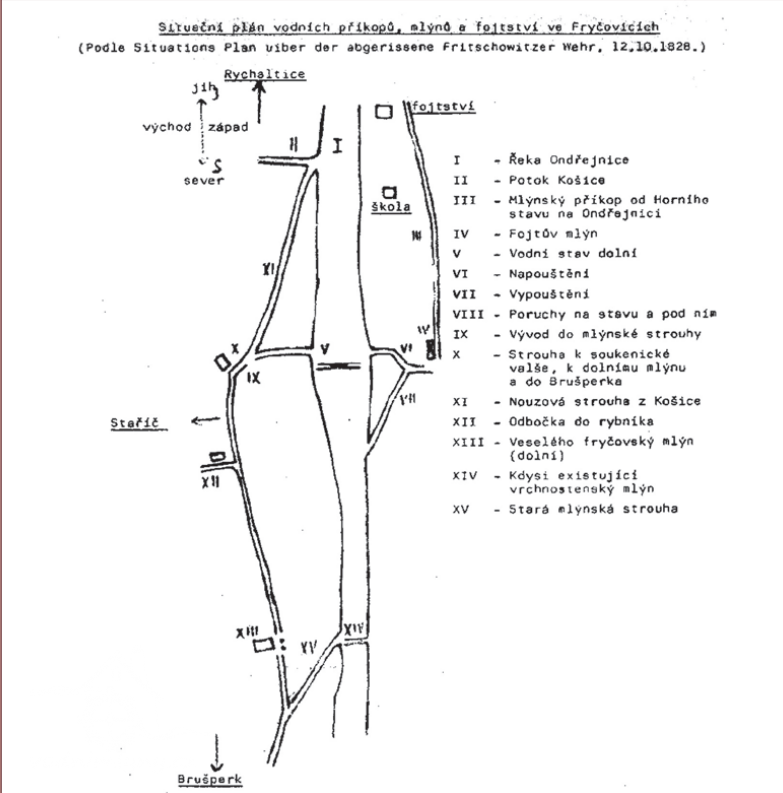 Původní vrchnostenský mlýn patrně ležel o 50 m západněji přímo na toku Ondřejnice, na současné místo byl přesunut až po vybudování Dolního neboli Nového náhonu.