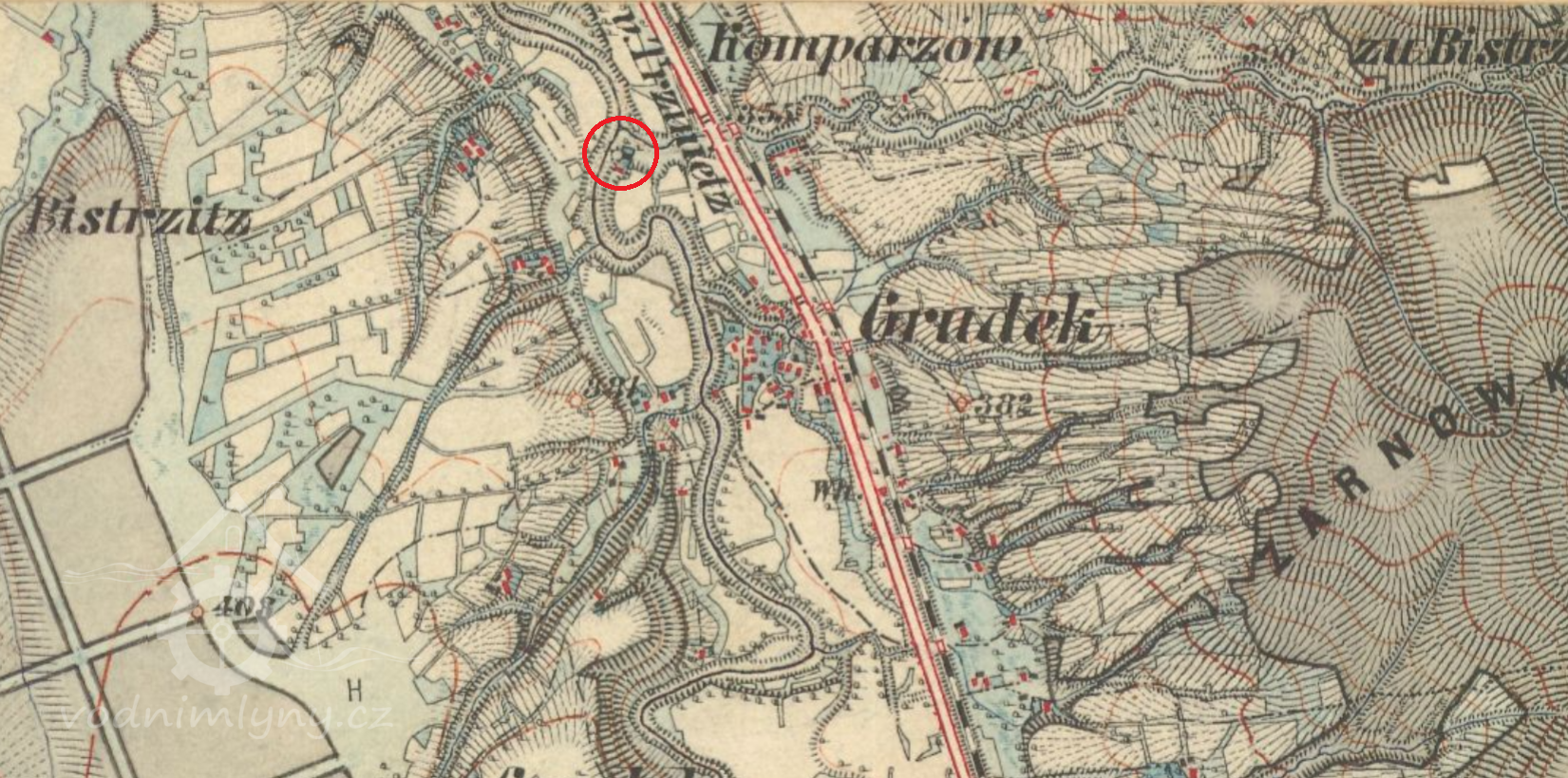 V první čtvrtině 18. století měl Hrádek 2 vodní mlýny. Tyto oba mlýny na horní vodu zpracovaly 40 měřic ječmene, 100 měřic ovsa a 20 měřic pohanky.