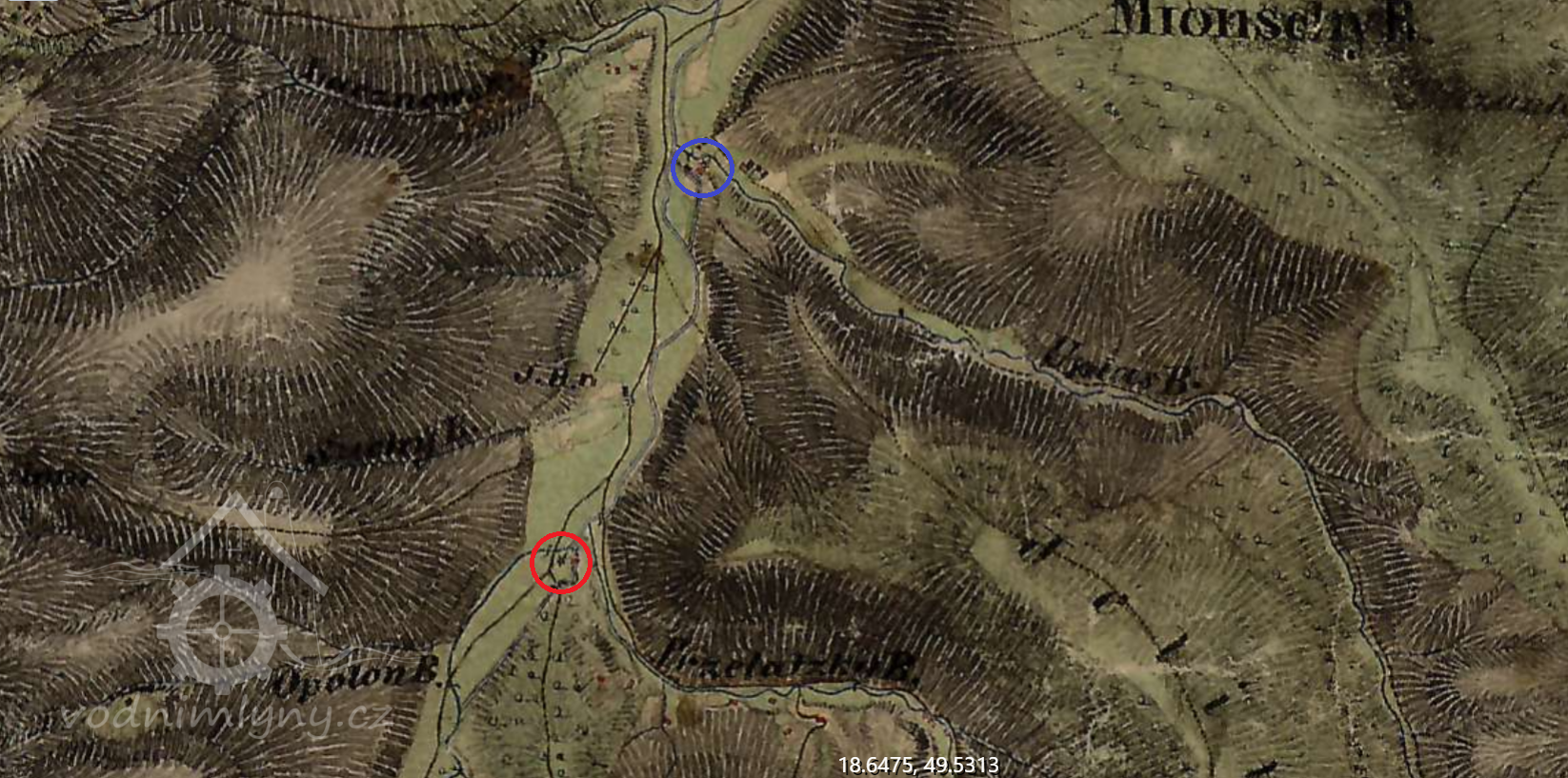 Náhon (Mühlbach) tekl těsně za oběma objekty a byl levostranným z potoka Uplaz, který tekl podél severní strany areálu. Další náhon začínal na říčce Lomné jezem a přímou linií směřoval k parc. č. 191, kde se napojoval do výše zmíněného náhonu. Jako jeden náhon pak vtékal do Lomné pod jejím soutokem s potokem Uplaz. Rýha náhonu je nevýrazně zachována jižně od čp. 47 v zadní části louky až po Lomnou.