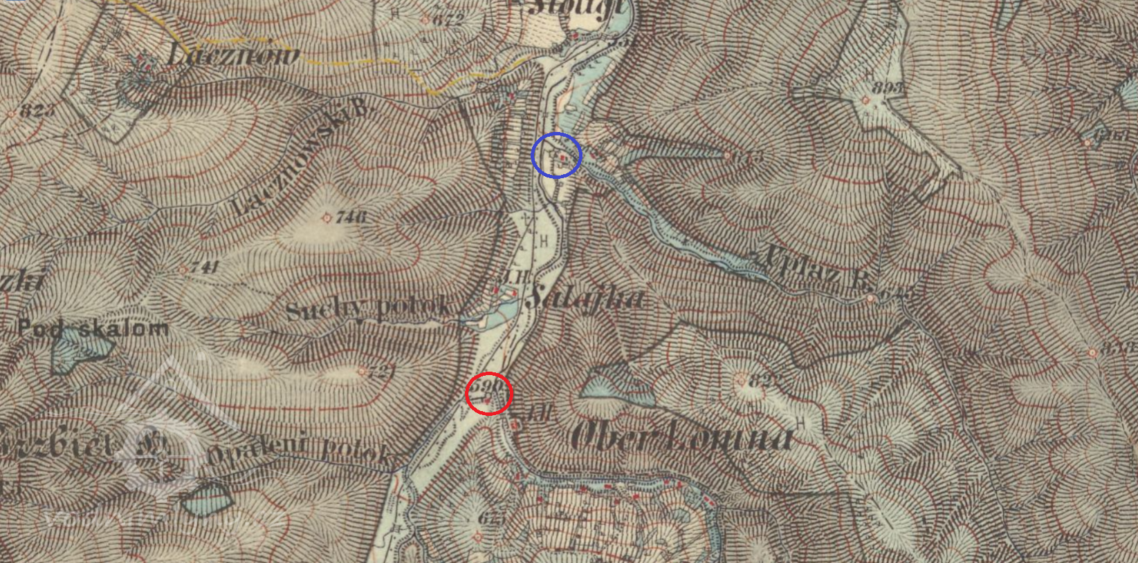 600 m severně od kostela Povýšení sv. Kříže v Horní Lomné