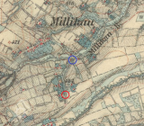 Mlýn na soutoku, vyhořel 1902, dnes slouží k bydlení.