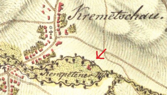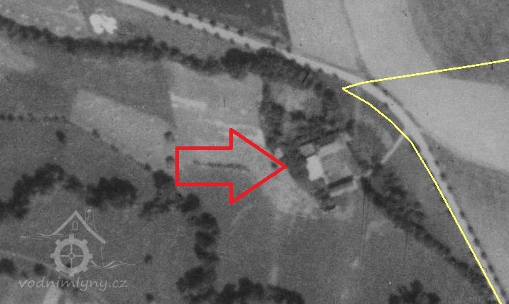 Osamocený Křemačovský mlýn měl vlastní náhon plus vypouštěná voda z mlýna v Podolíčku (1834).
