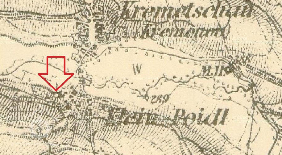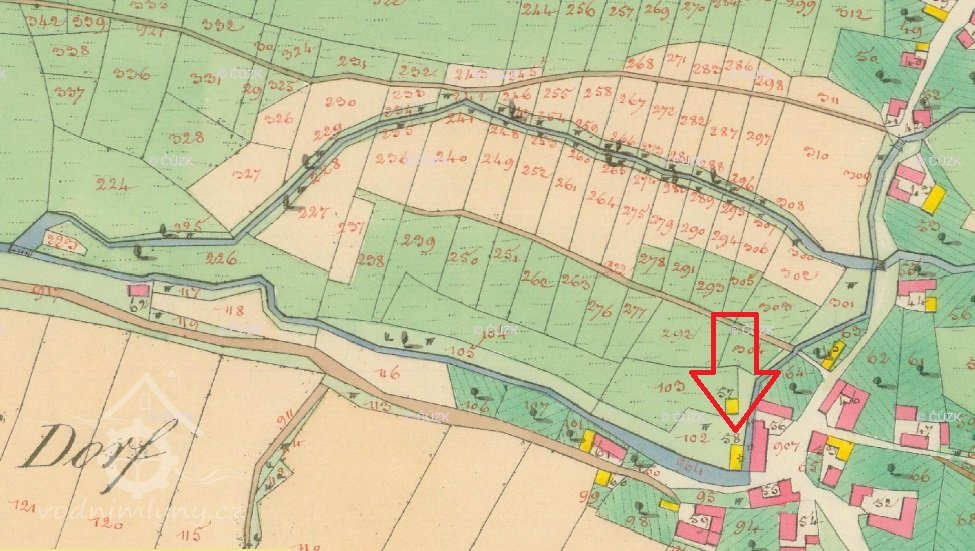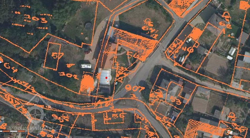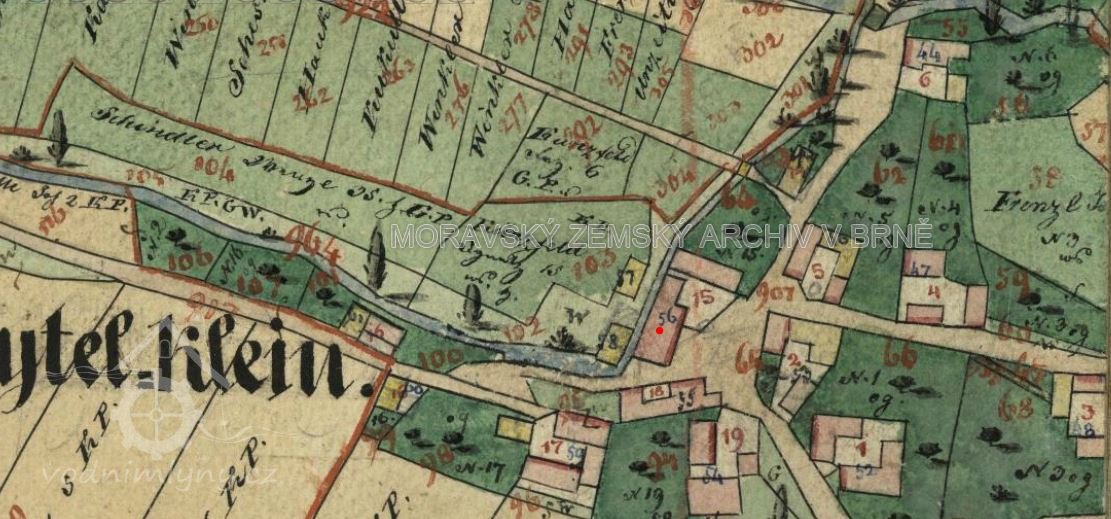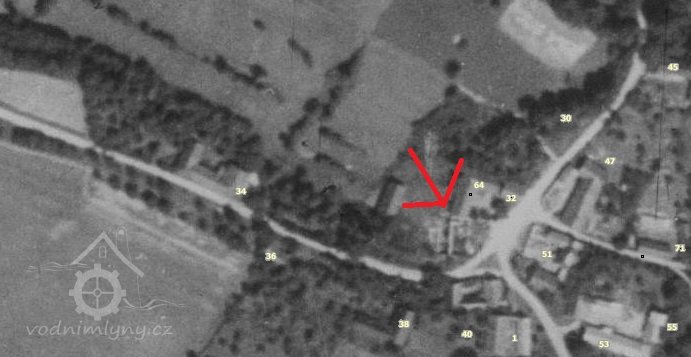 Mlýnice již nestojí. Stála v místě mapové značky, dnes bazén. (RŠ)