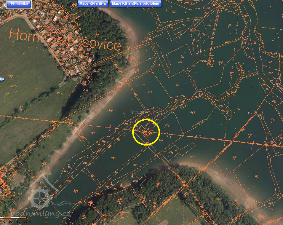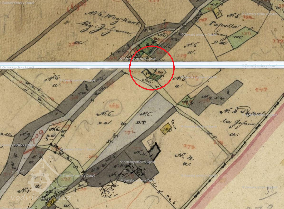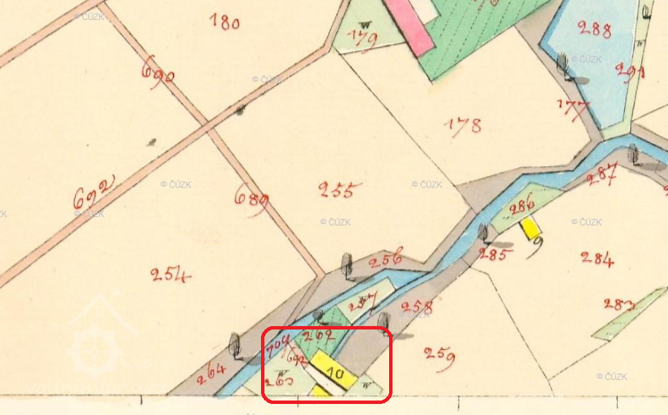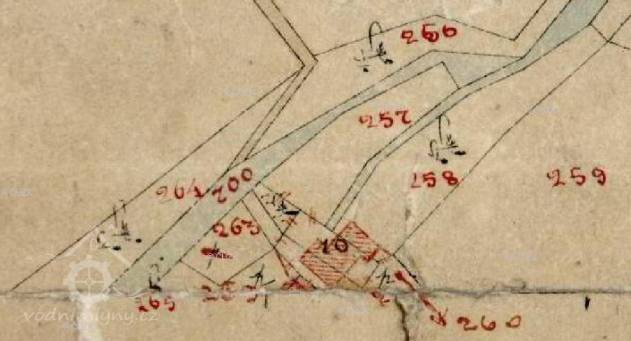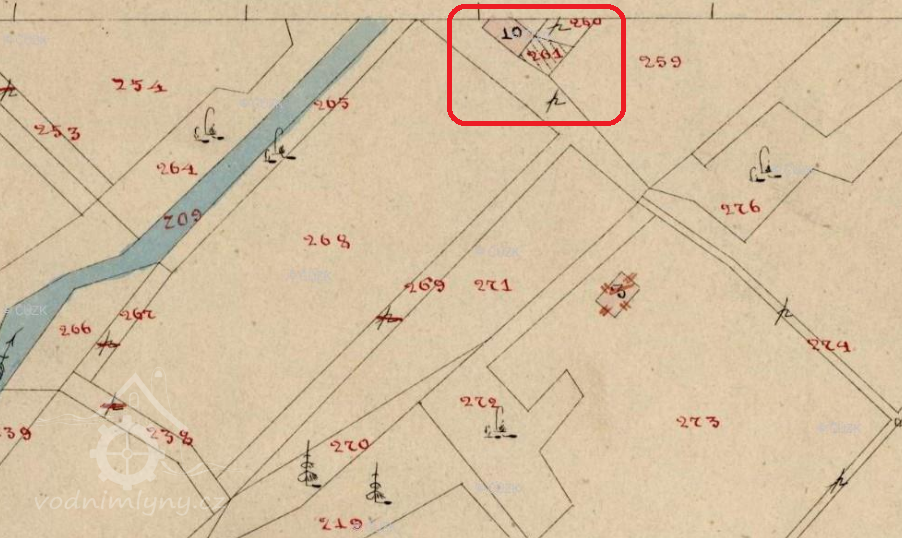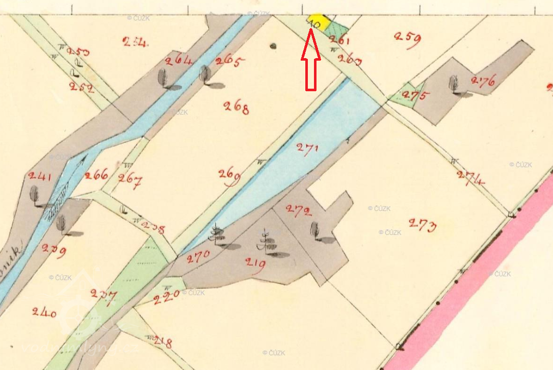 Několik metrů nad mlýnem se nachází delší rybník na pč. 271. Patrně z něj byl mlýn poháněn.