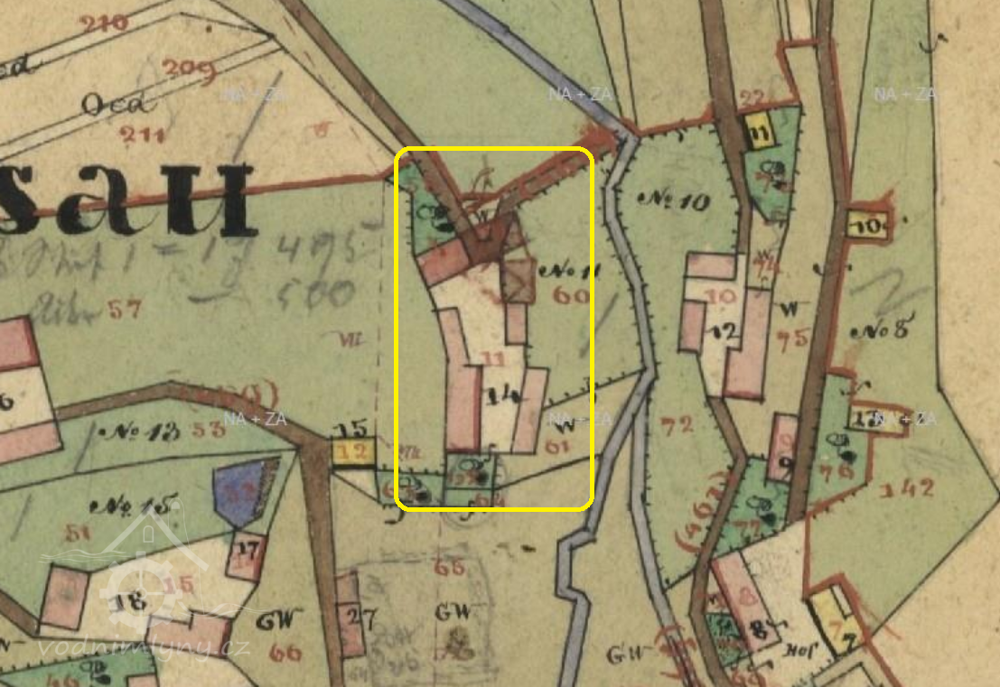 V čísla 11 bývala dříve výroba potaše flusárna – zrušena 1880. Od roku 1855 do roku 1878 byla v čísle 11 palírna lihu a od roku 1880 škrobárna