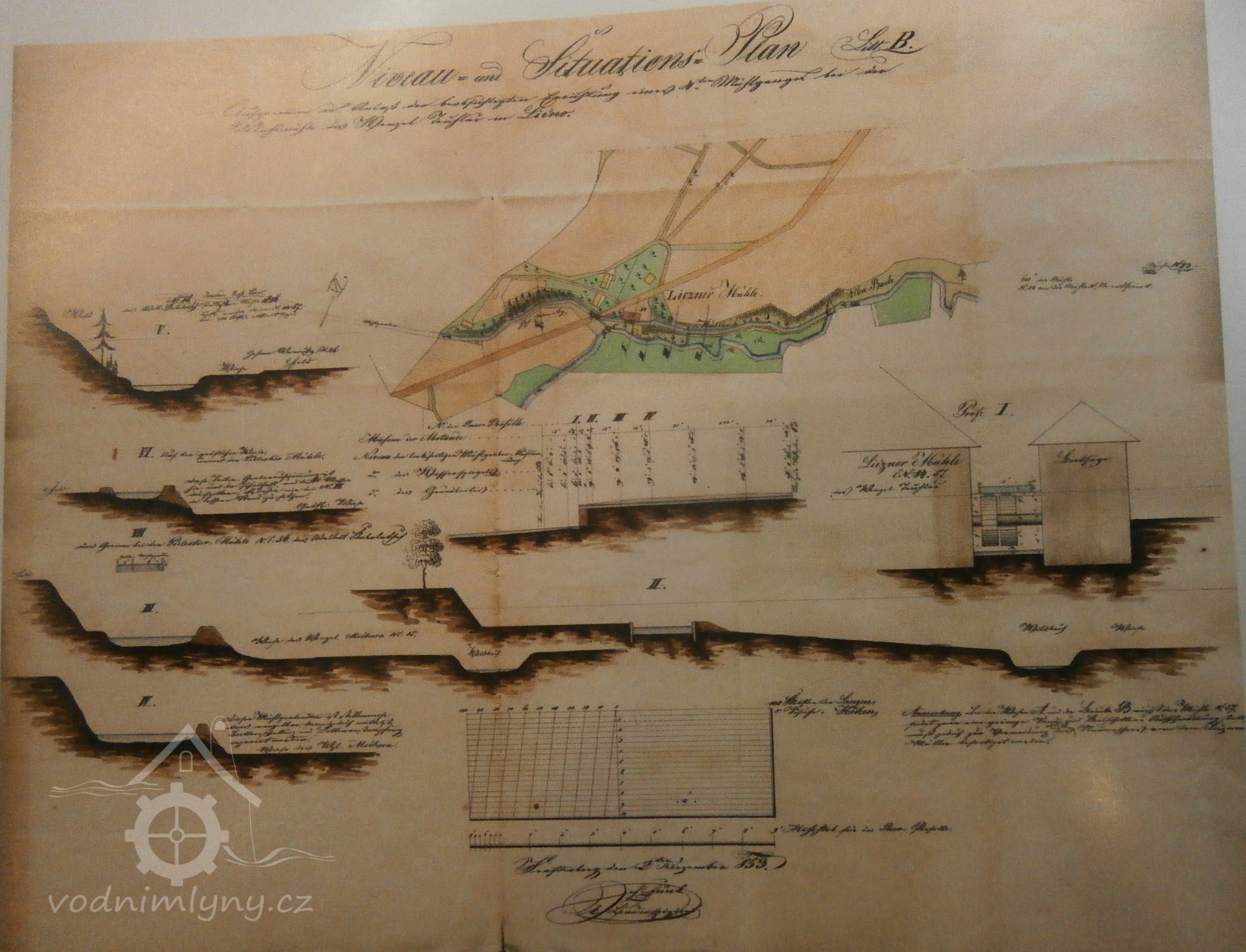 1930: 1 turbína Francis, hltnost 0,51 m3/s, spád 3,6 m, výkon 17.9 HP