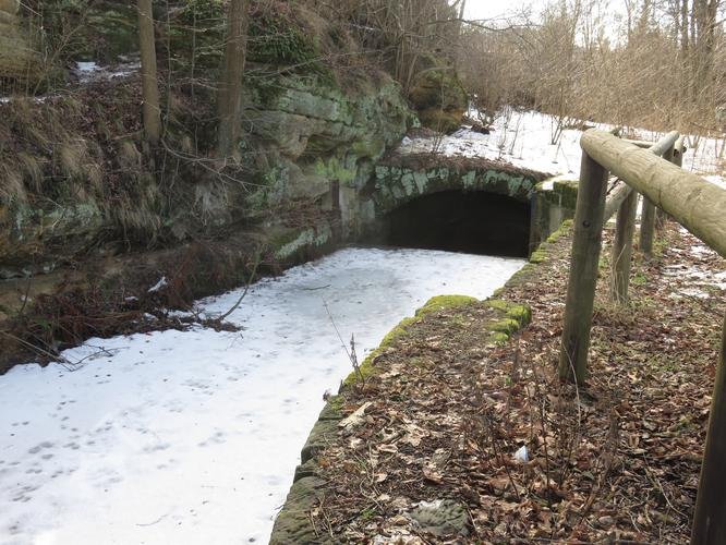 Mlýn pod Radvaneckým rybníkem (po roce 1900 pouze pila) na severním okraji katastru v sousedství pozoruhodné skalní průrvy. Zaniklý.