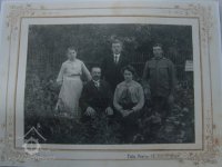 Nejstarší fotografie, v popředí Antonín Řezníček se ženou, vzádu dcera, uprostřed František a vpravo syn Antonín, nedatováno, © autor neznámý