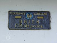 Litinová cedule Union České Budějovice, 2012, © Šimek, (Prvky na obrázku: značka výrobce na vodním motoru)