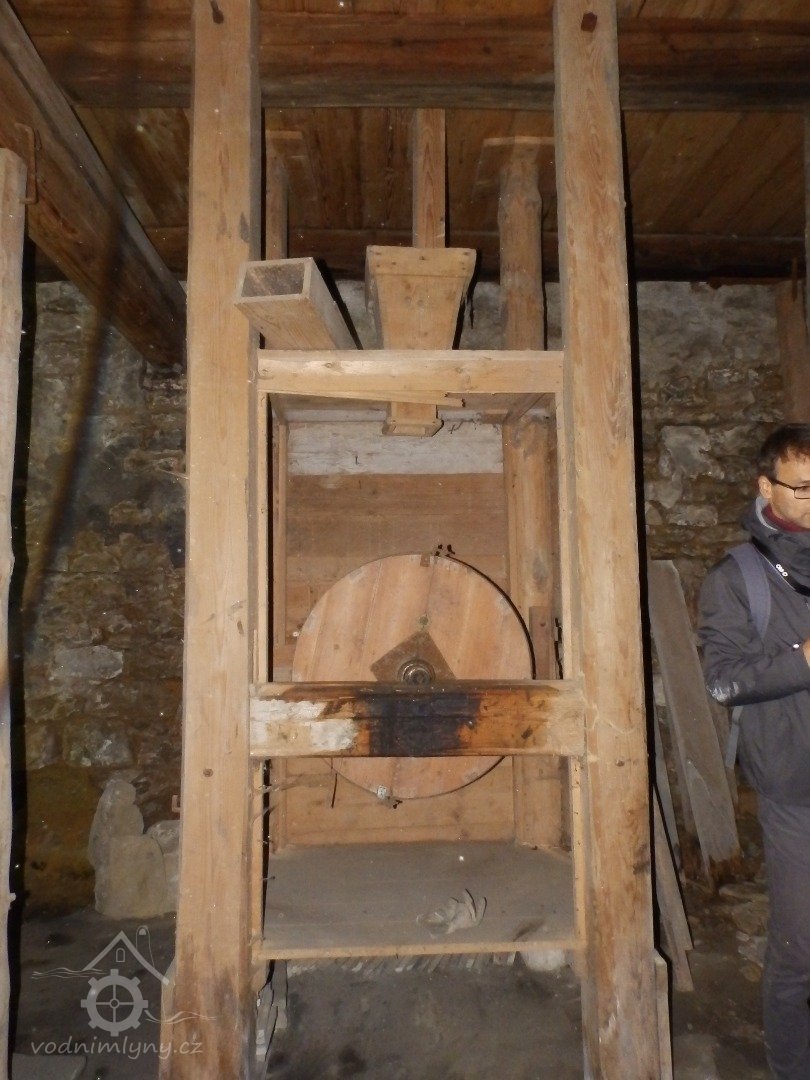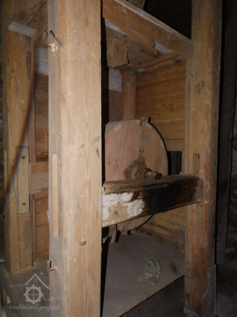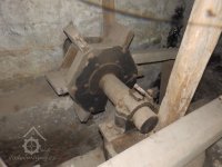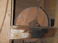 Rozeta palečného kola, 2019, © doxa, (Prvky na obrázku: transmise, řemenice, převody - paleční kola, pastorky a cévníky (řemeslný výrobek), transmise, řemenice, převody - transmisní hřídele s řemenicemi (výrobek průmyslový i řemeslný))