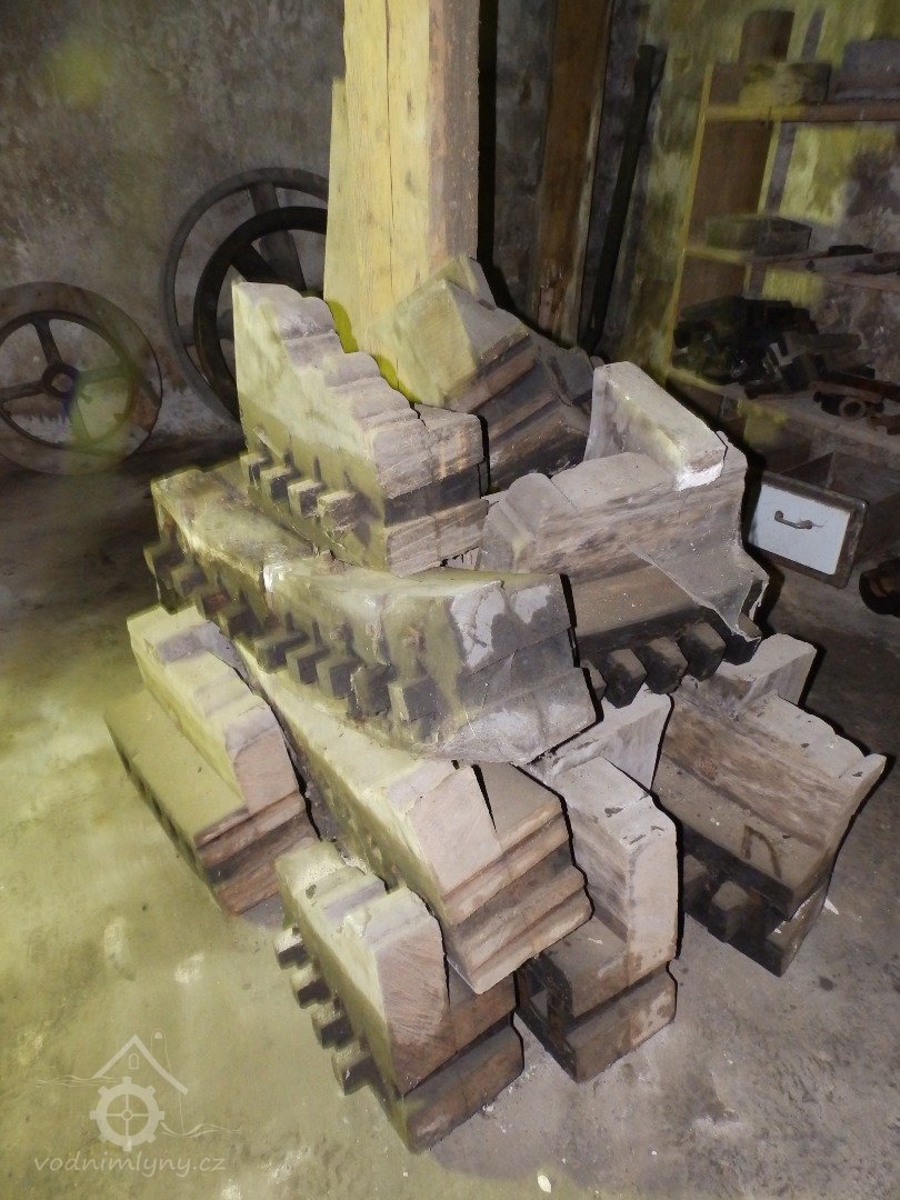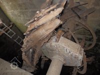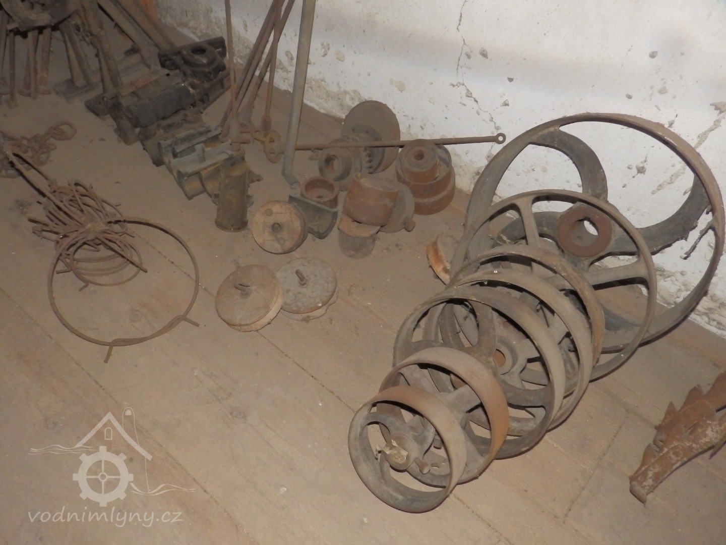 Zbytky palečného kola, 2019, © doxa, (Prvky na obrázku: transmise, řemenice, převody - paleční kola, pastorky a cévníky (řemeslný výrobek))