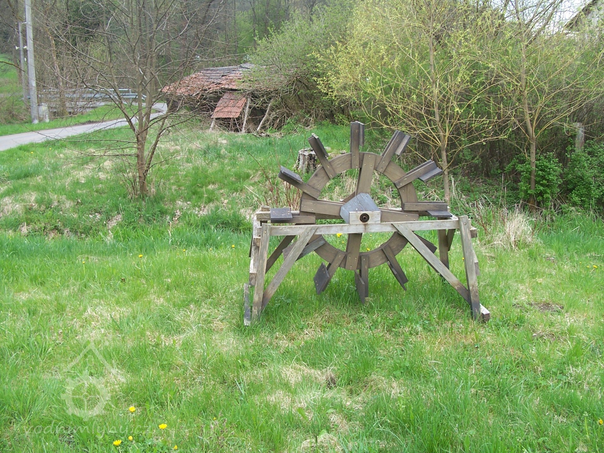 Maketa vodního kola stojící vedle mlýna, květen 2022, © Ringo
