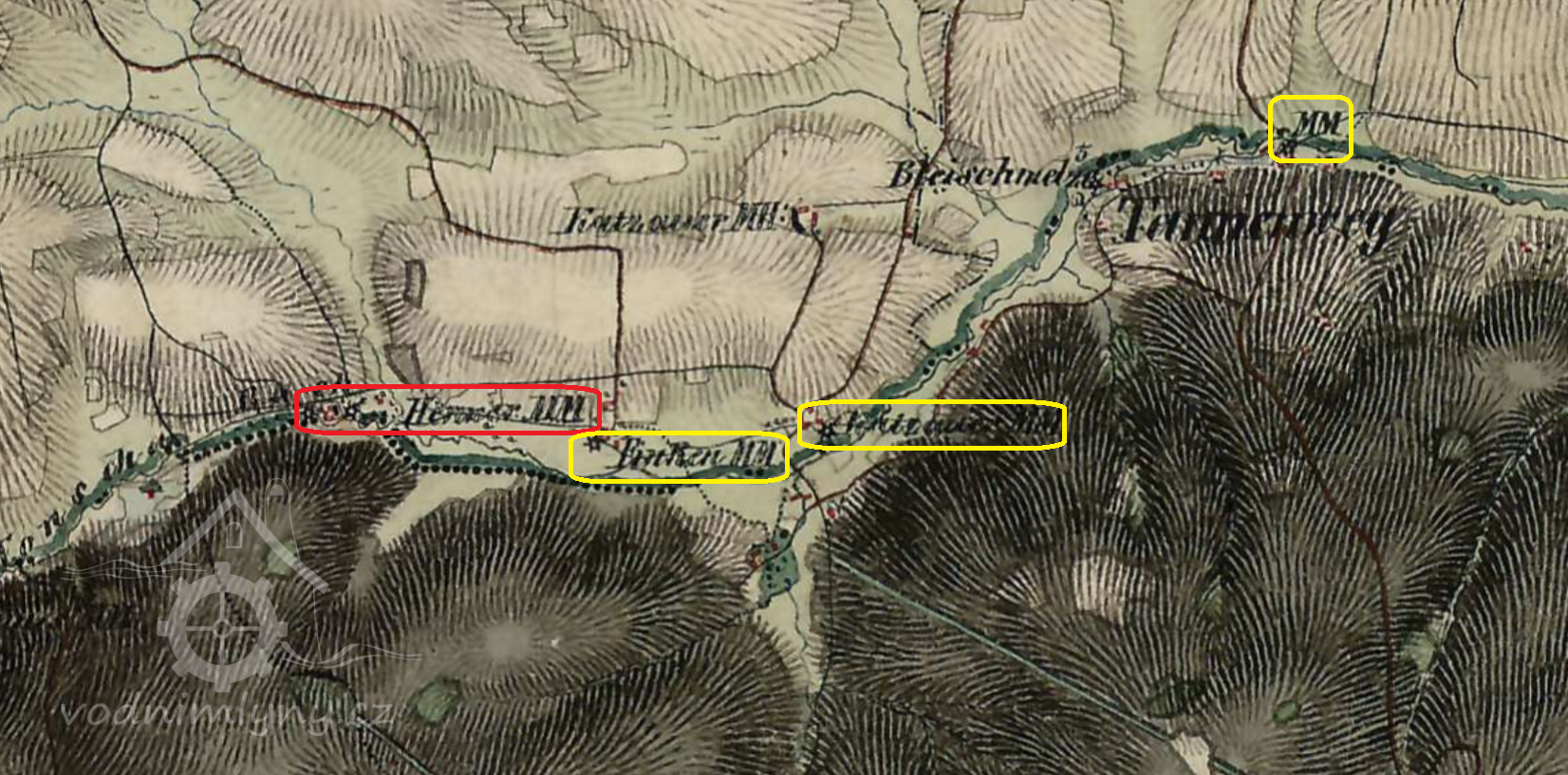 Mlýn na mapě III. vojenského mapování, 1875 - 1952, © Archiv - Zeměměřičský úřad