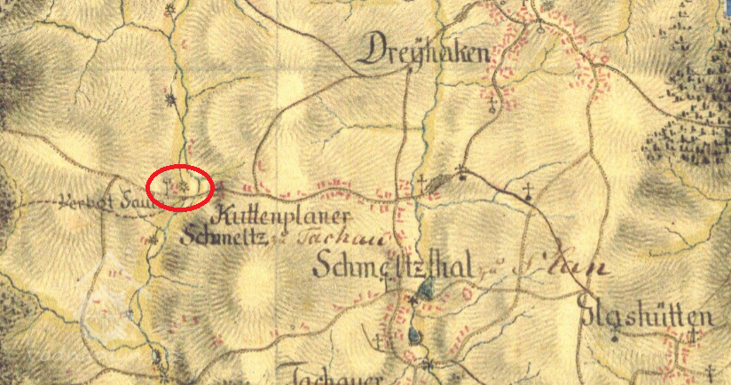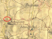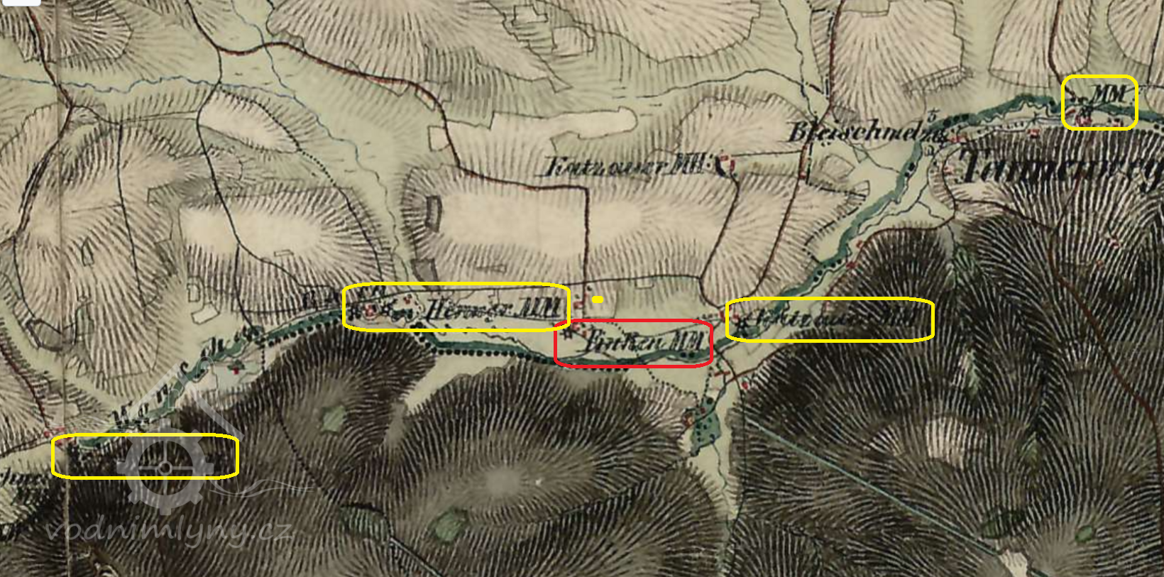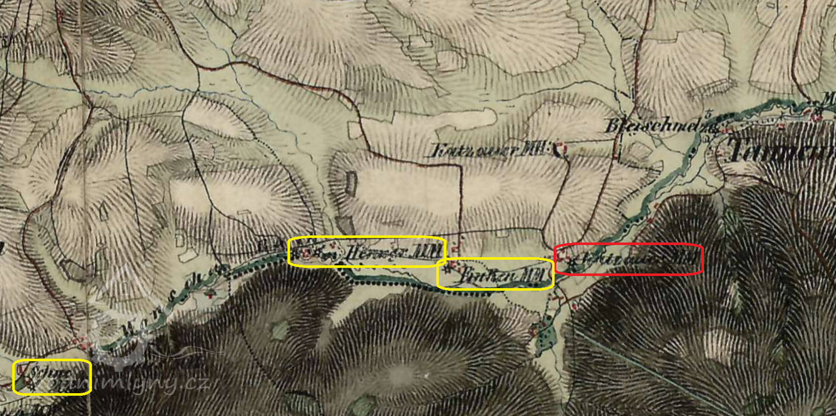 Mlýn na mapě I. vojenského mapování, 1764-1768 a 1780-1783, © Oldmaps.geolab.cz