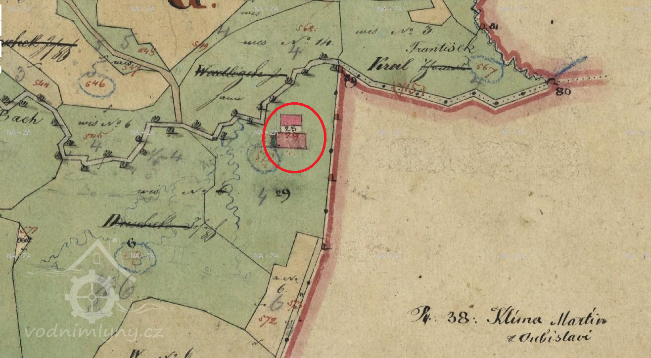 Mlýn na Indikační skice, 1838, © Archiv - Zeměměřičský úřad