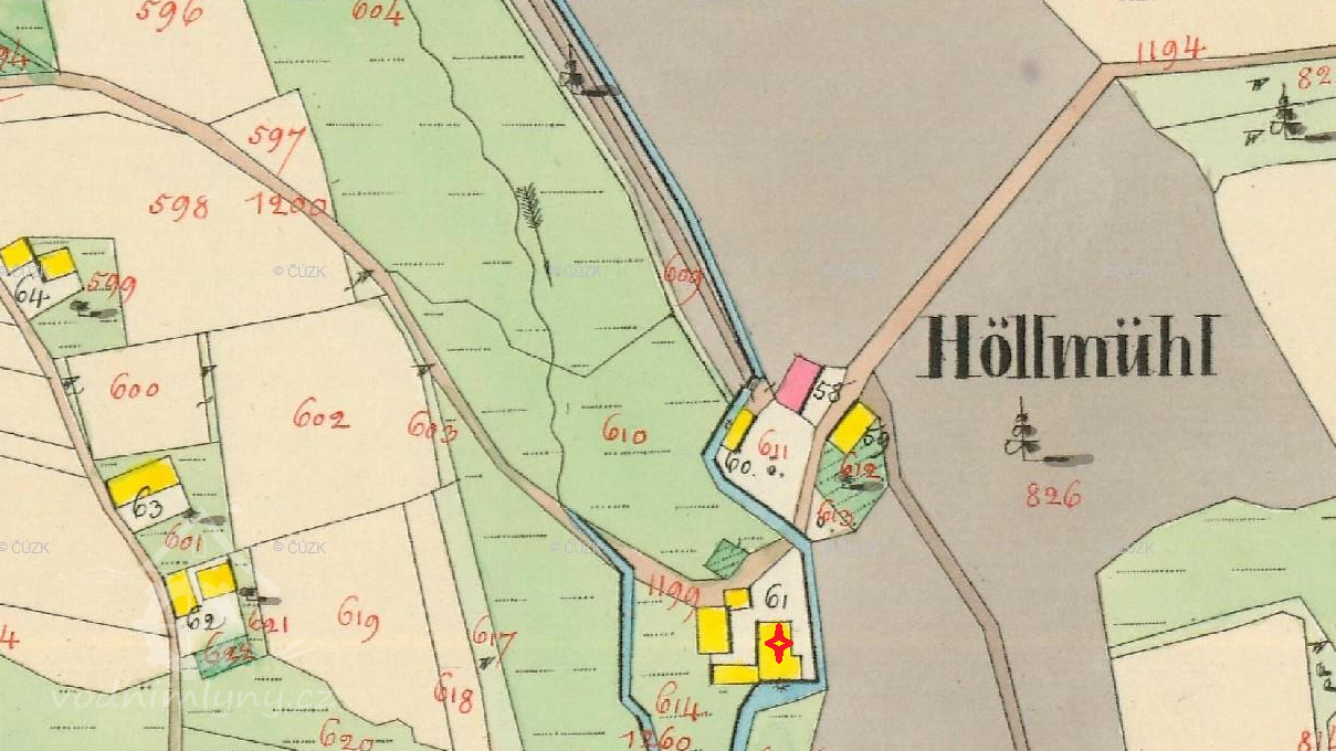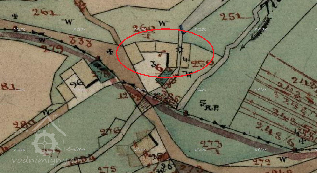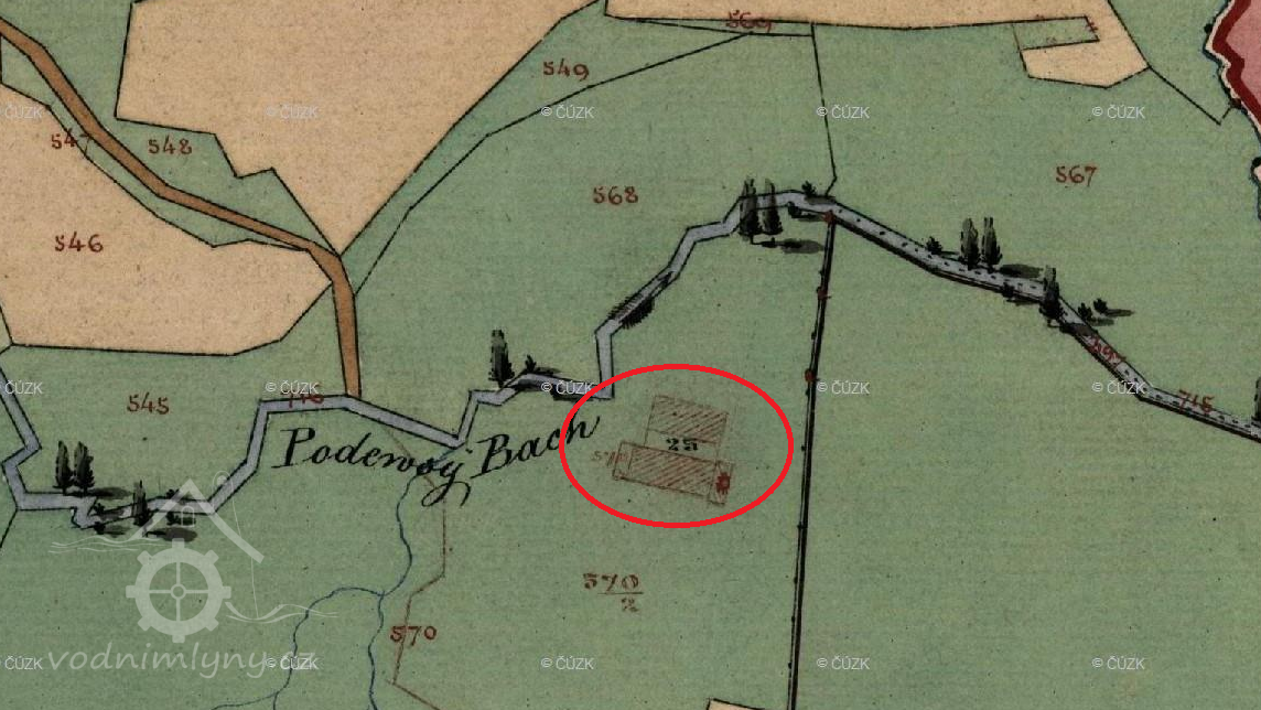 Mlýn na originální mapě stabilního katastru, 1838, © Archiv - Zeměměřičský úřad
