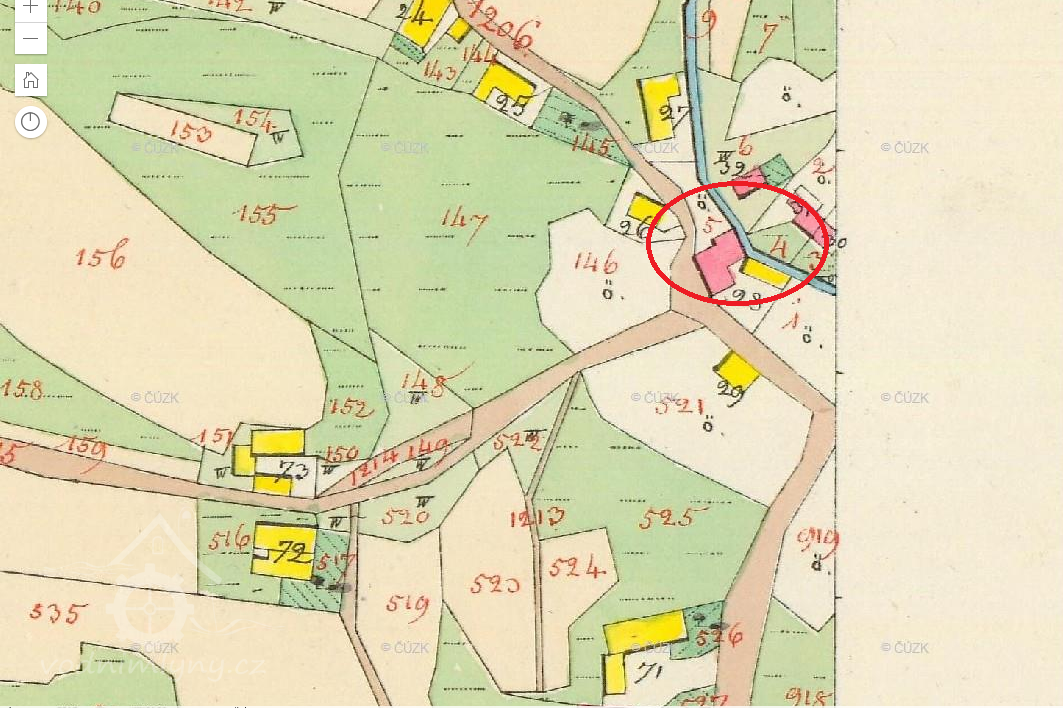 Císařský povinný otisk, ještě bez mlýna, 1837, © Archiv - Zeměměřičský úřad