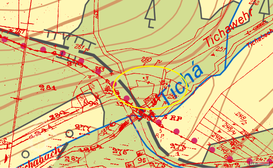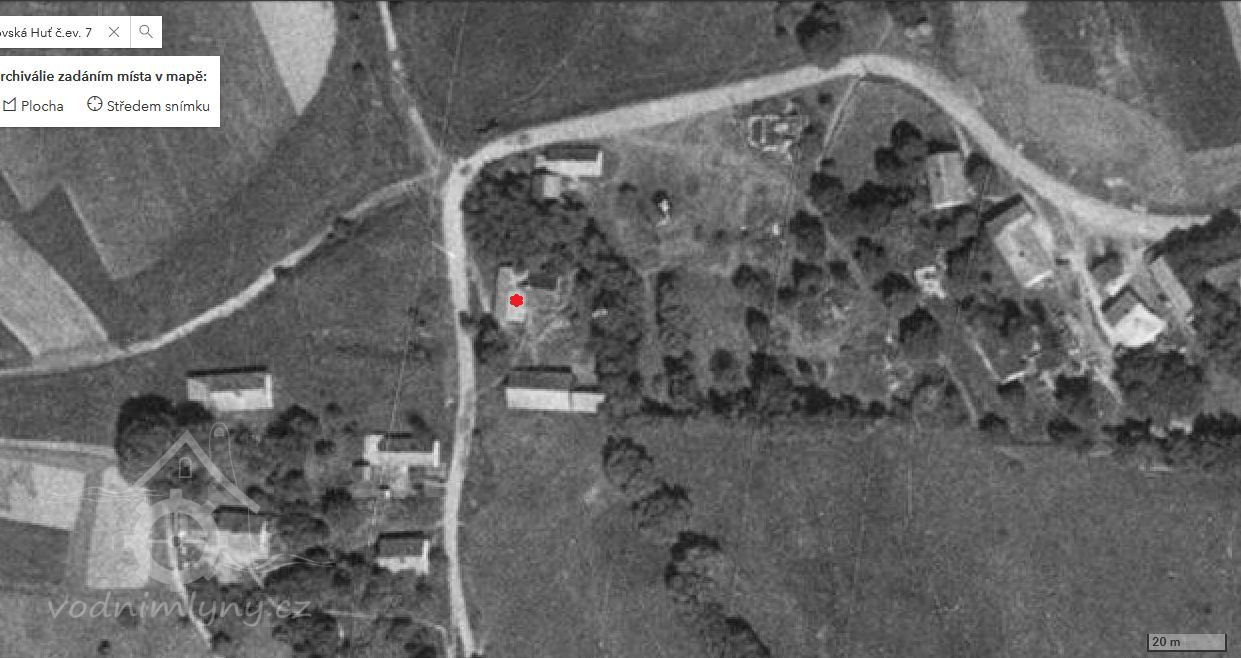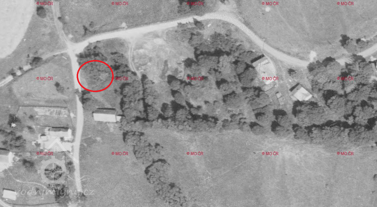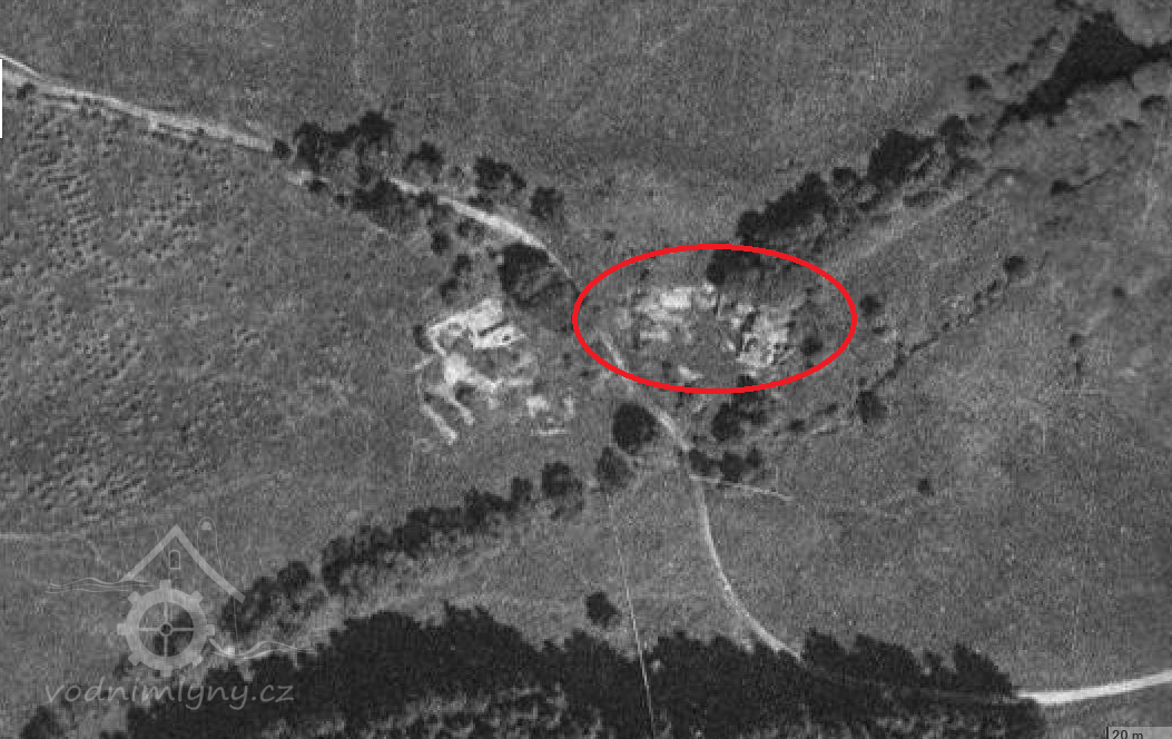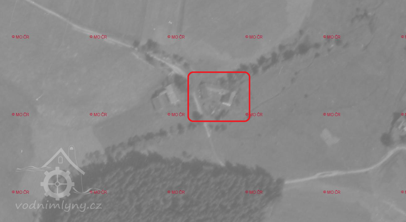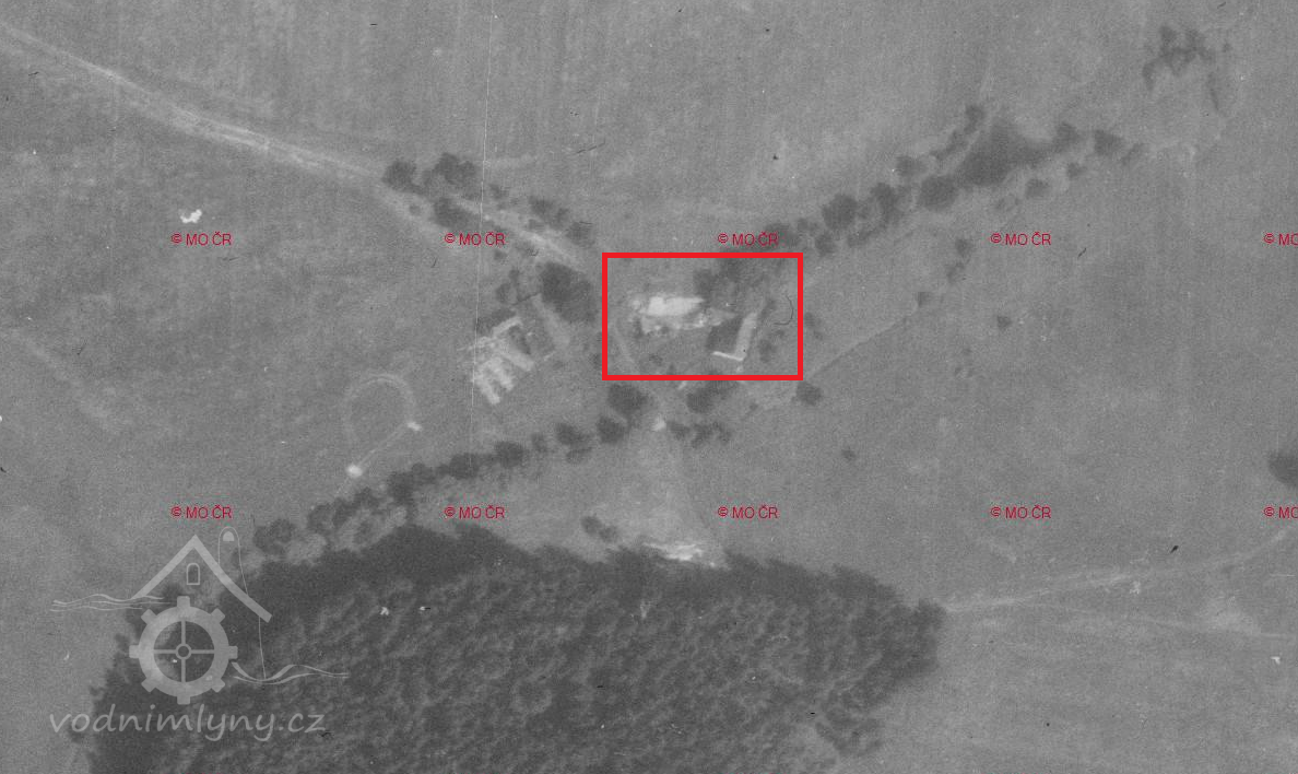 Ortofotomapa, mlýn už je v troskách, 1958, © Archiv - Zeměměřičský úřad