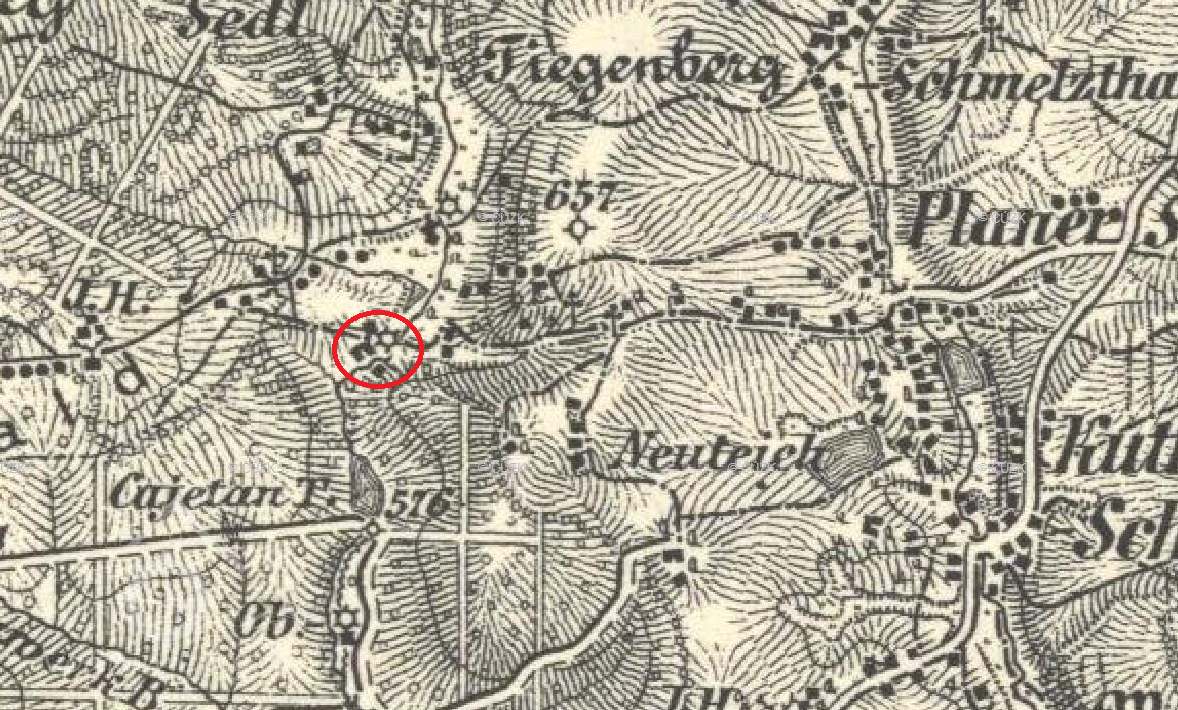 II. vojenské mapování, výřez, 1836-1852, © maps.arcanum.com