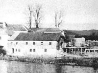 Detail okénkové pohlednice - pohled na mlýn před přestavbou. V bočním domku, který stojí vpravo, se nacházelo pekařství, které také patřilo Josefu Suchomelovi., 1930, © Petr Kadlec - archiv