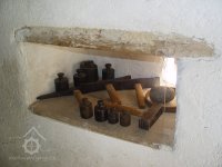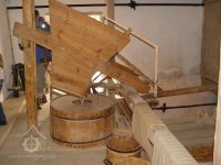 Pohled na kamenné složení, 2008, © Šimek, (Prvky na obrázku: kamenné složení (šrotovací, mlecí), násypný koš)